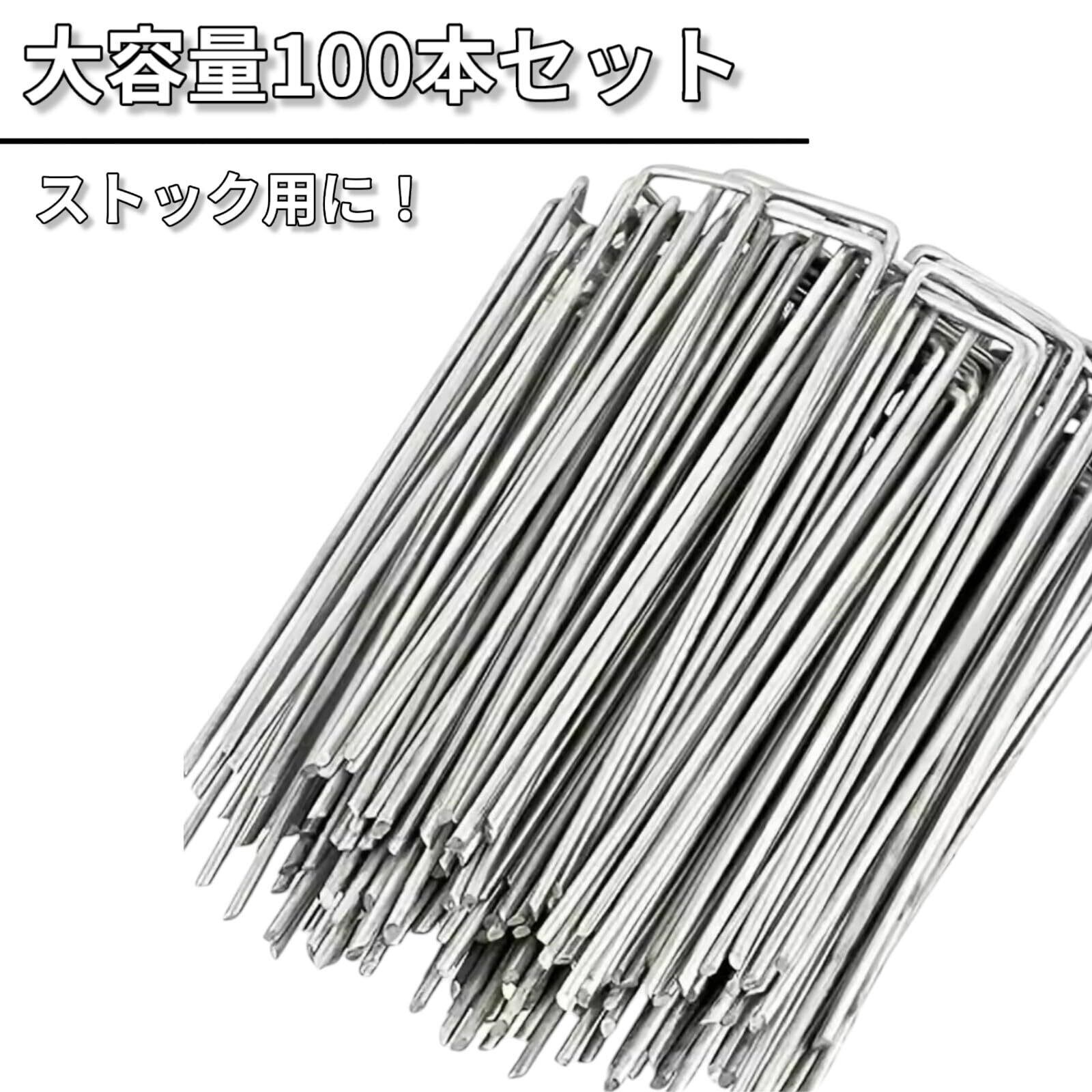 [Ken R] ケンアール Uピン杭 U字釘 防草シート 固定 人工芝 押さえ U字型 ガーデニング 家庭菜園 農業用ネット 100本セット