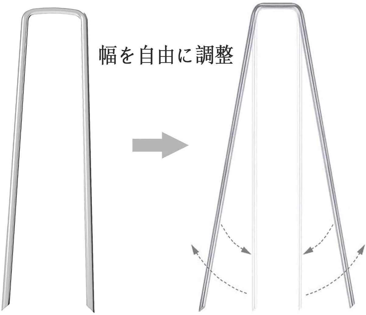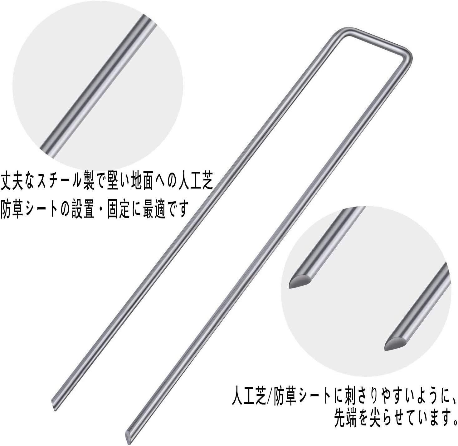 <br>【使用簡単&注意点】Uピン杭の先が斜めにカットされているのでシートに差し込みやすいです。防草シート、人工芝にしっかりと固定 できます。ご注意:Uピン杭の先が鋭いので、使用時に手を傷つ かないようにご注意してください。また、使用ない場合にお子様が届かない所に収納 してください。