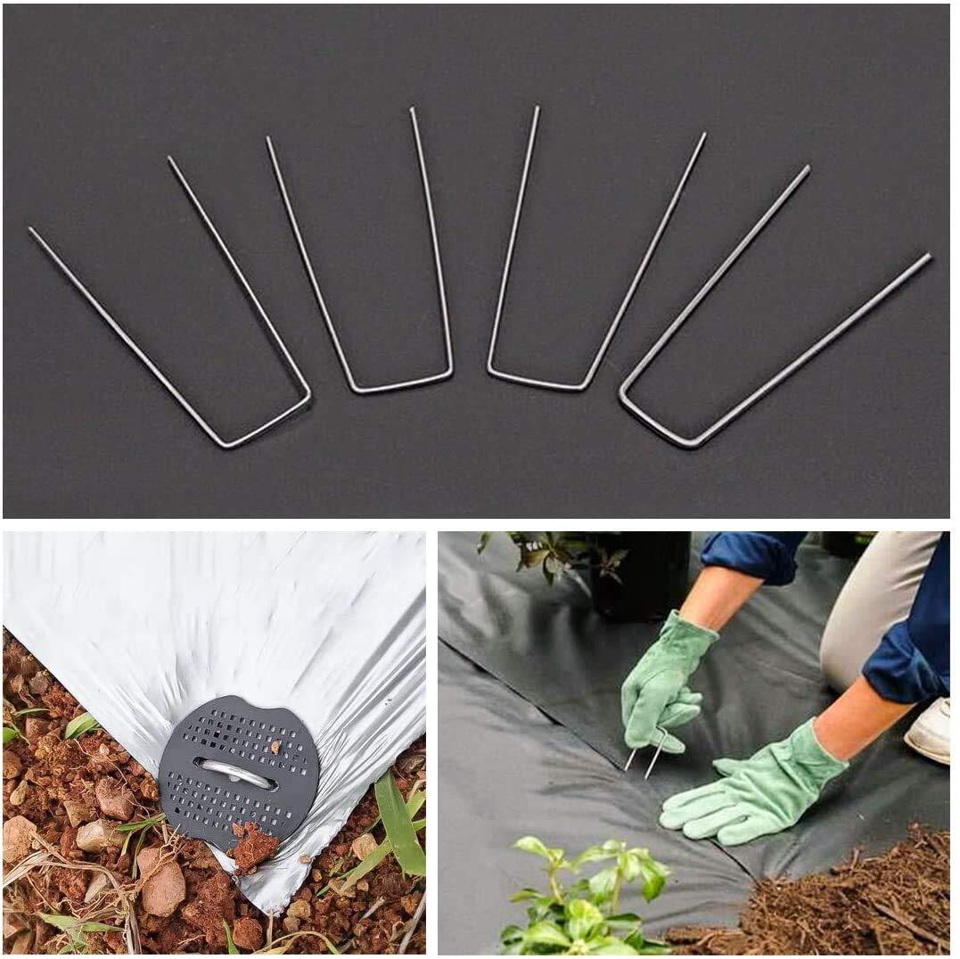 【広く用途】防草シート、人工芝、農業用防虫ネット、不織布、ビニールマルチ、植栽シート、植生シート、植生マット各種シート・人工芝マット等をつなぎ合わせるU字ピンです。コの字釘は 庭やベランダにリアル、家庭菜園な芝生シートに使用します。