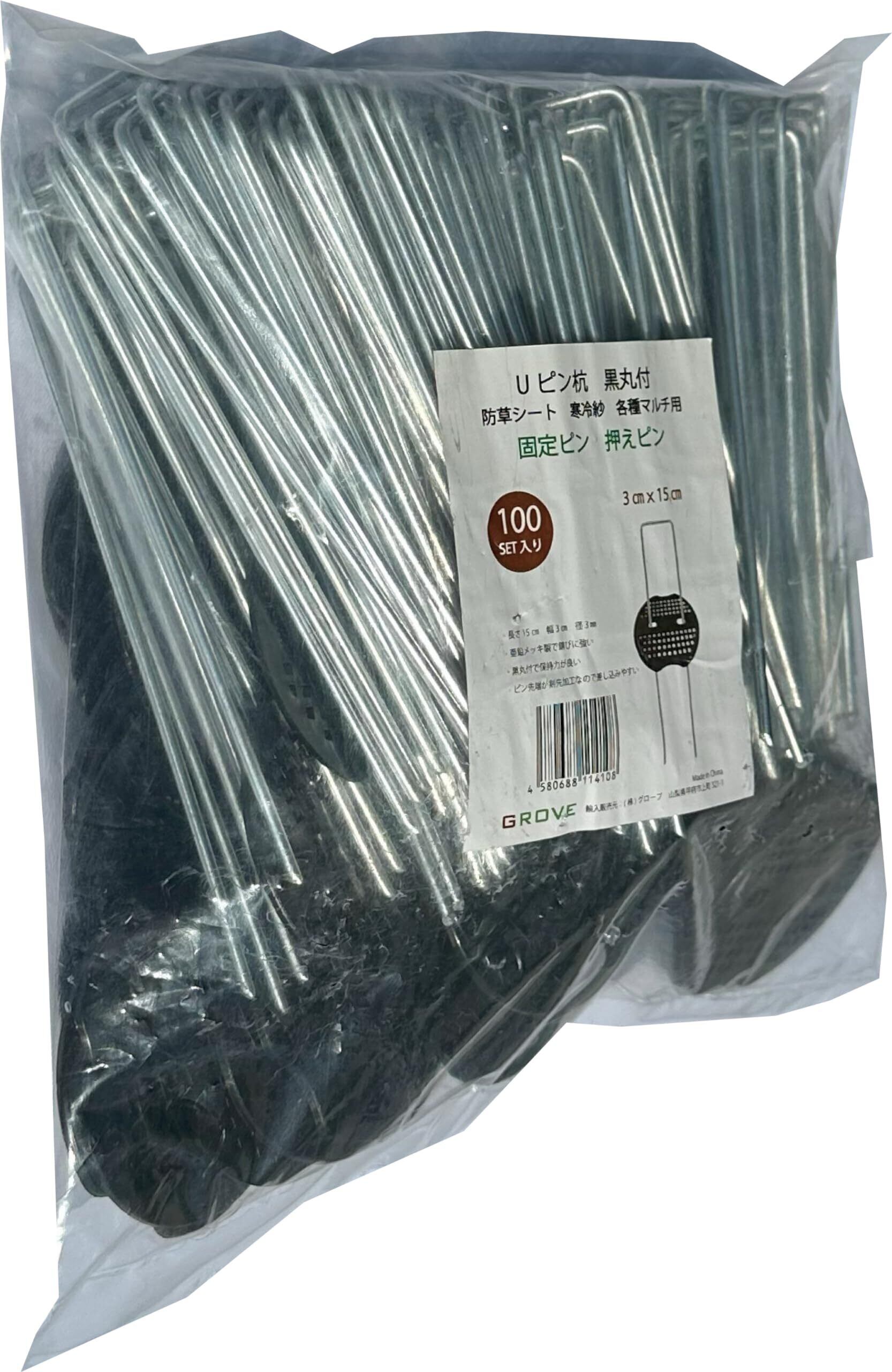 GROVE Uピン杭 黒丸付 長さ15cm 幅3cm Φ3mm 100本入 シルバー色 防草シート 固定用 人工芝 おさえピン 固定ピン