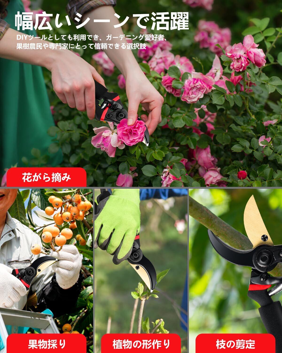 剪定ばさみ 【2025人気庭師のおすすめ】 剪定バサミ 剪定鋏 切れ味 2段階調節可能 SK85高炭素鋼刃 フッ素コーティング 錆びにくい 握りやすい 枝切りバサミ 園芸ハサミ 園芸用はさみ 錆びにくい 軽量化アルミハンドル 果樹 庭木 盆栽 庭園作業 ガーデニング 観葉植物 園芸用品