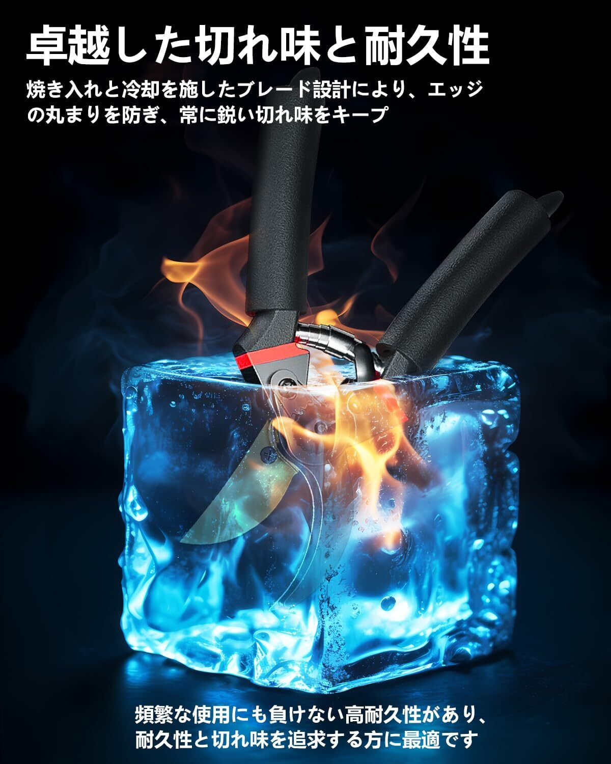 「高性能な刃で抜群の切れ味」硬度と耐久性に優れたSK85鋼を使用しており、切れ味が長持ちします。細い枝から最大30mmの太い枝まで、サクサクと切れる性能を実現しており、庭木や果樹の手入れに最適です。さらに、フッ素コーティングが施されているため、ヤニや樹液が付きにくく、錆びにくいのでお手入れが簡単です。この一つで、庭の手入れが効率よく進みます。