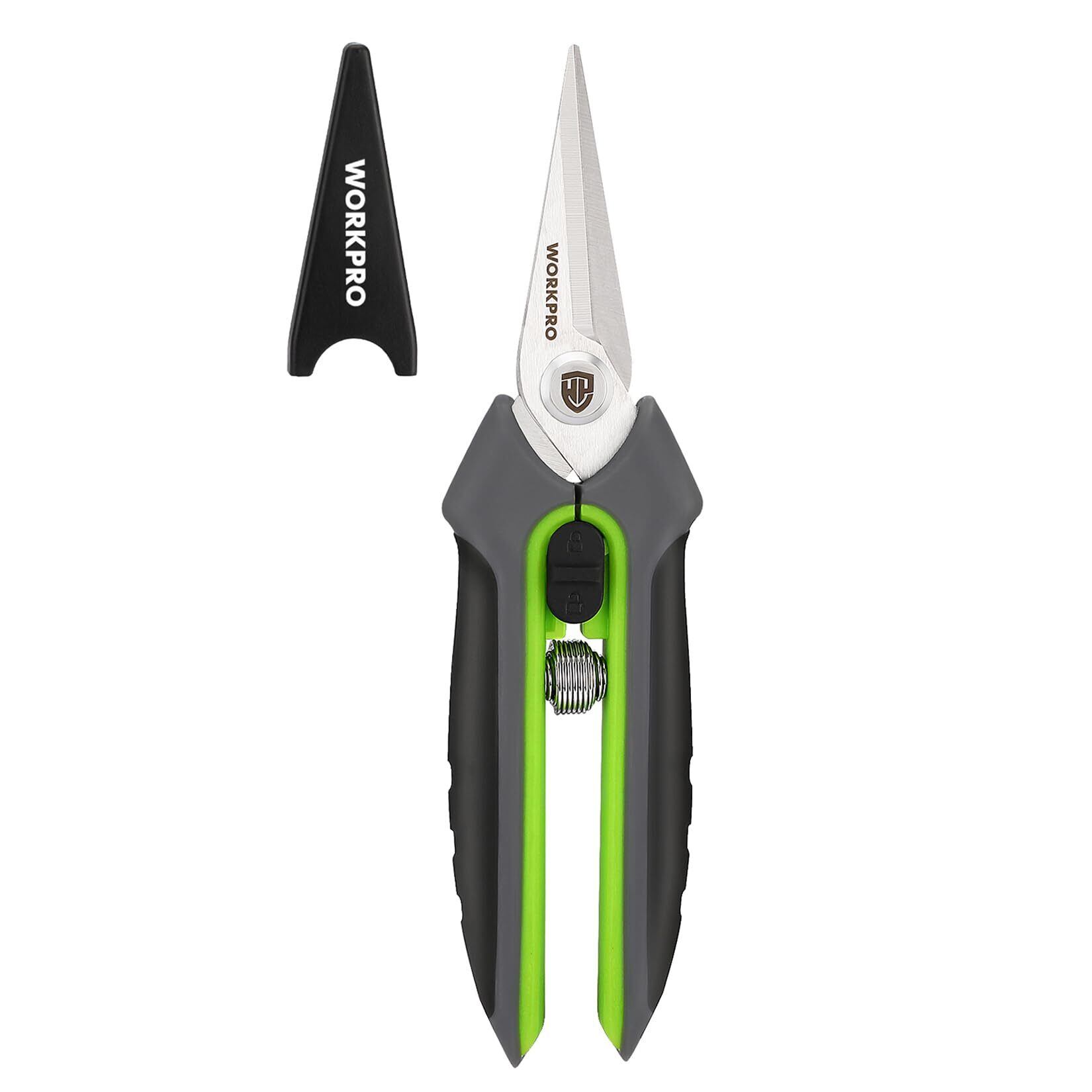 WORKPRO 剪定ばさみ 園芸ばさみ 鋏 剪定鋏 園芸鋏 ハサミ サクサク切れる 握りやすい 安全ロック付き 生け花 庭木 枝切り 果樹 盆栽 庭園 剪定 作業 はさみ グリーン&ブラック