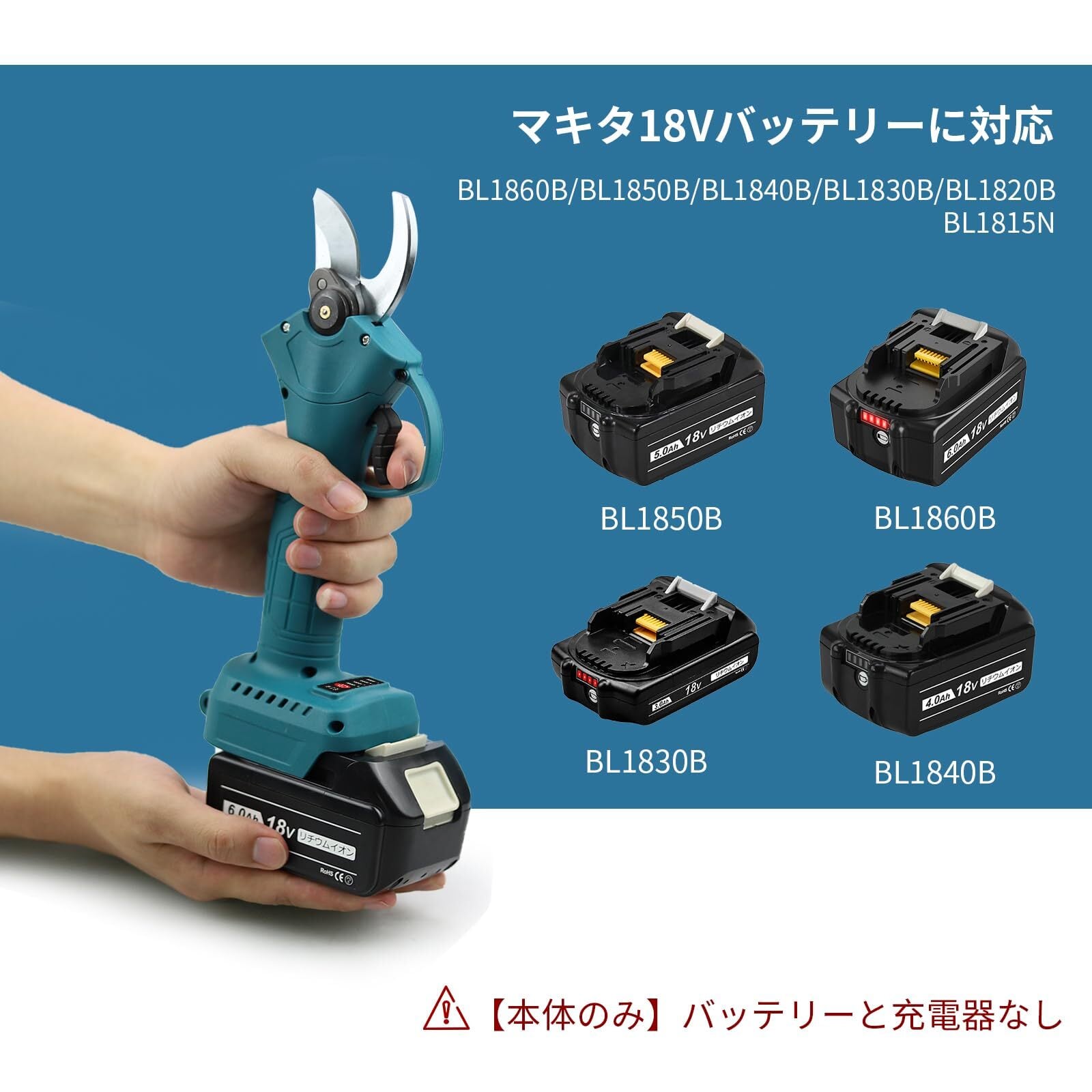 【マキタ 18v バッテリーに対応可能】剪定バサミ 電動 マキタに互換性があり、マキタ 18v バッテリー BL1815N BL1820B BL1830B BL1840B BL1850B BL1860Bに対応できます。(製のBL1860Bも対応出来ます) 場所を選ばず使用でき、作業時の心配もありません。長時間のバッテリー駆動により、時間を節約し、効率的に作業することができます。