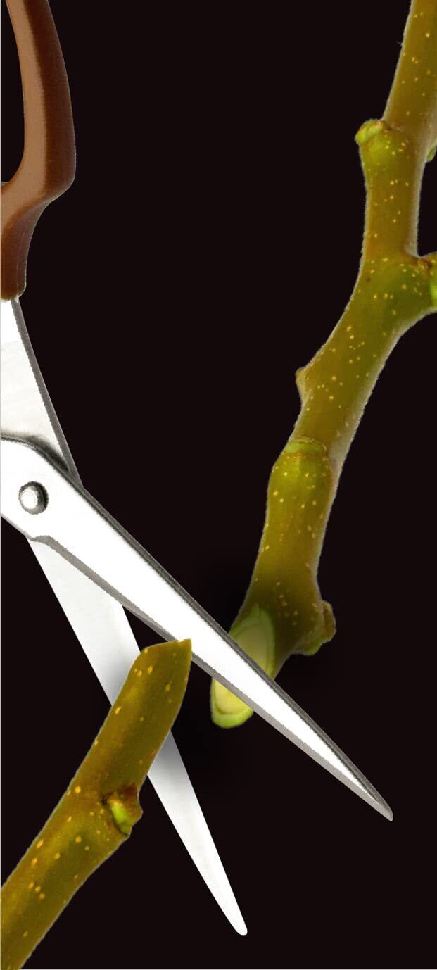 1段本刃付けによりきれいな切り口と軽い切れ味を実現し、切断面がきれいになり植物を痛めにくい