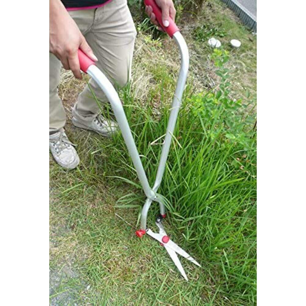 立ったままで雑草刈りができます。サビにくいステンレス刃です。腰の負担を軽減し、作業効率を高めます。