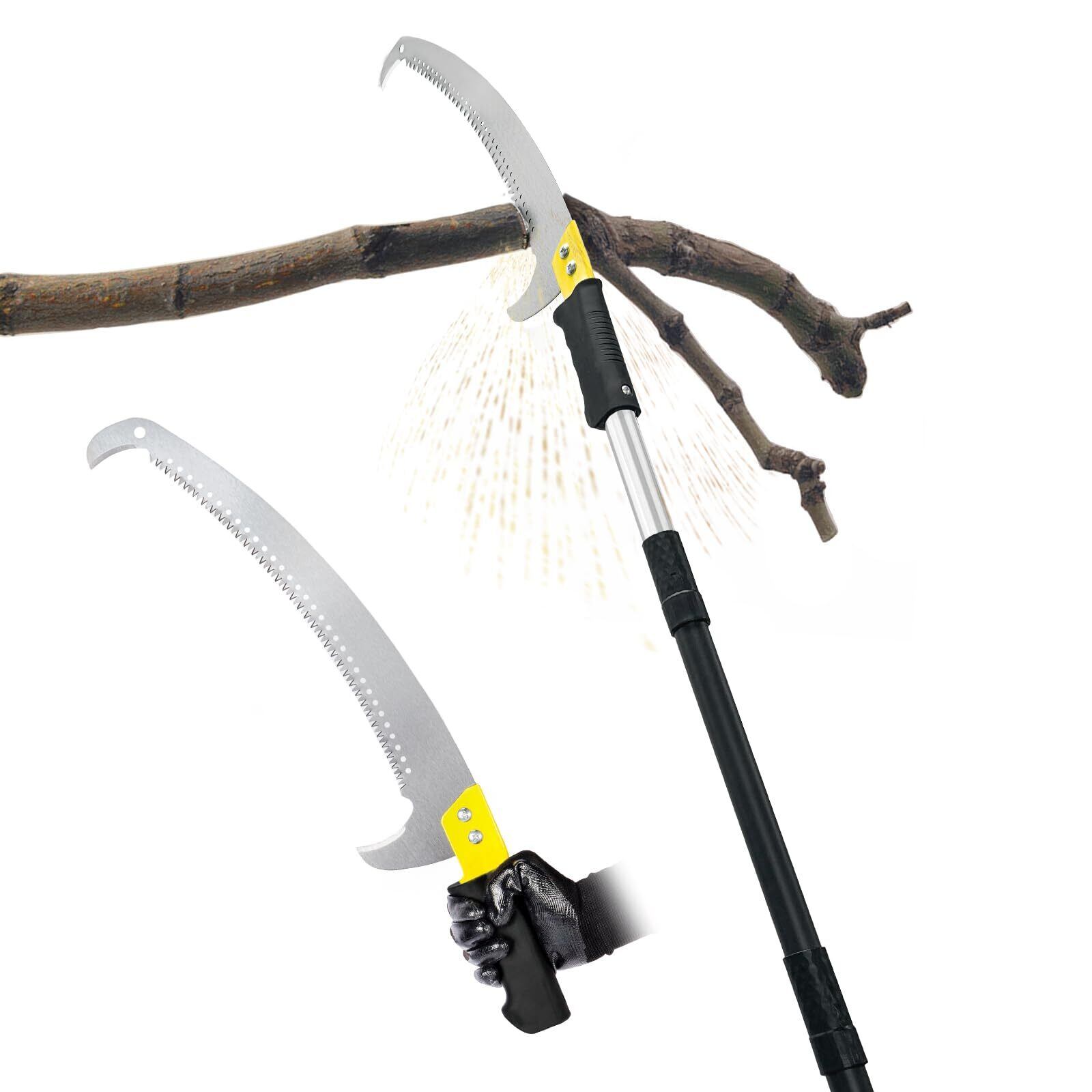 BlumeTrec 高枝ノコギリ 4.3m 手持ち&高枝両用 軽量ステンレス製 伸縮式高枝鋸 高枝切りバサミ 手動剪定 フック刃付き 三面刃 ブレード付き 園芸用こぎり ガーデニング用品 ガーデン パティオ ヤード 林業用