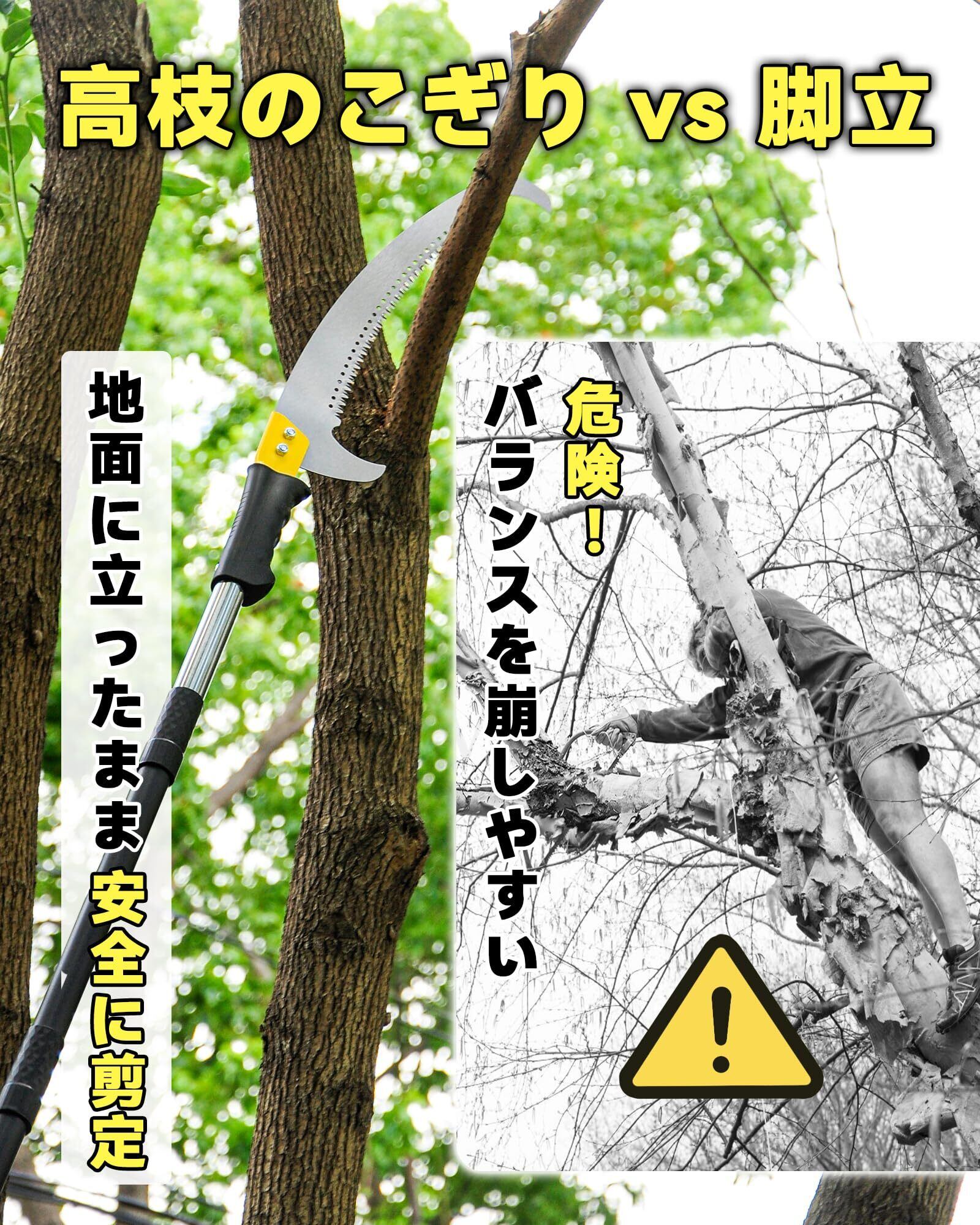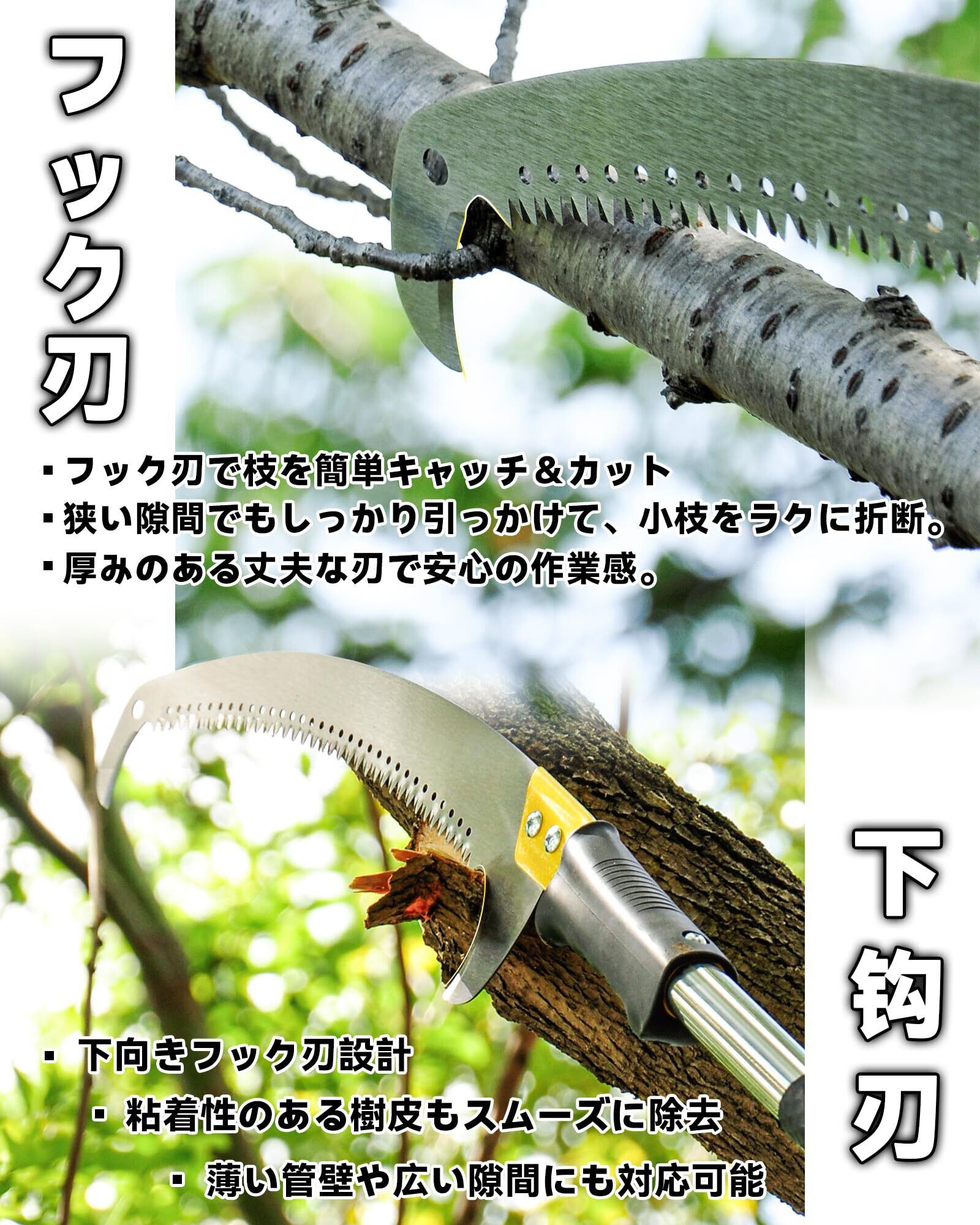 BlumeTrec 高枝ノコギリ 4.3m 手持ち&高枝両用 軽量ステンレス製 伸縮式高枝鋸 高枝切りバサミ 手動剪定 フック刃付き 三面刃 ブレード付き 園芸用こぎり ガーデニング用品 ガーデン パティオ ヤード 林業用 | KSショップ