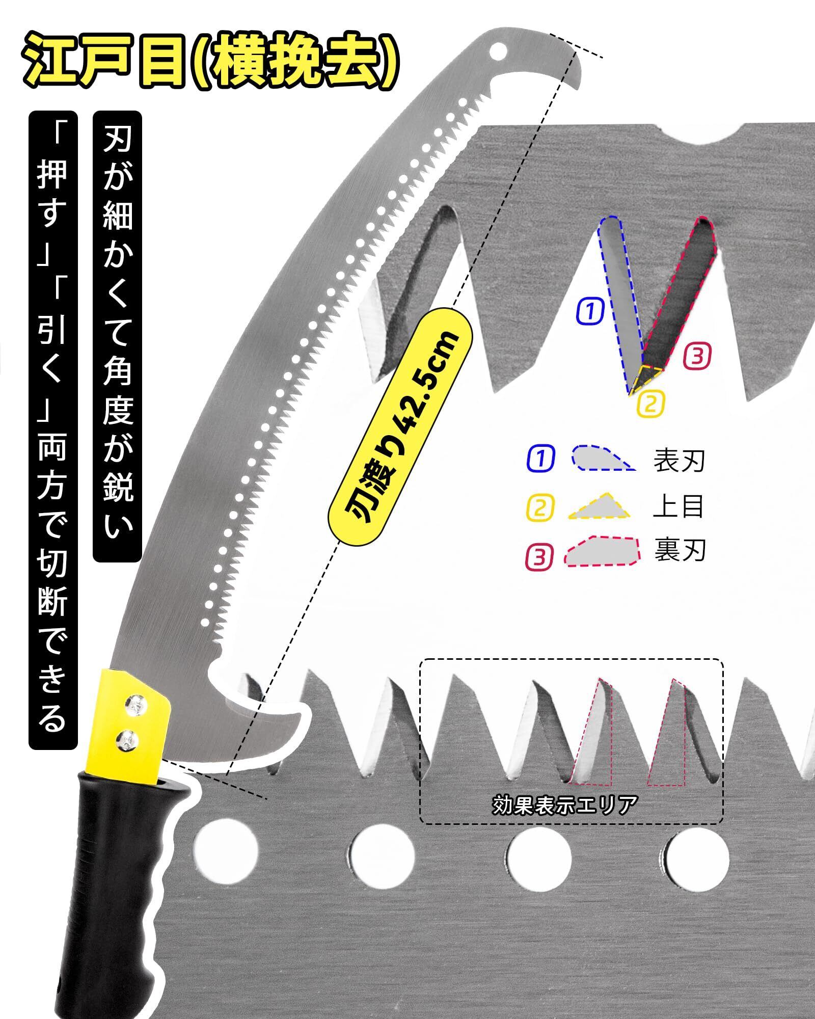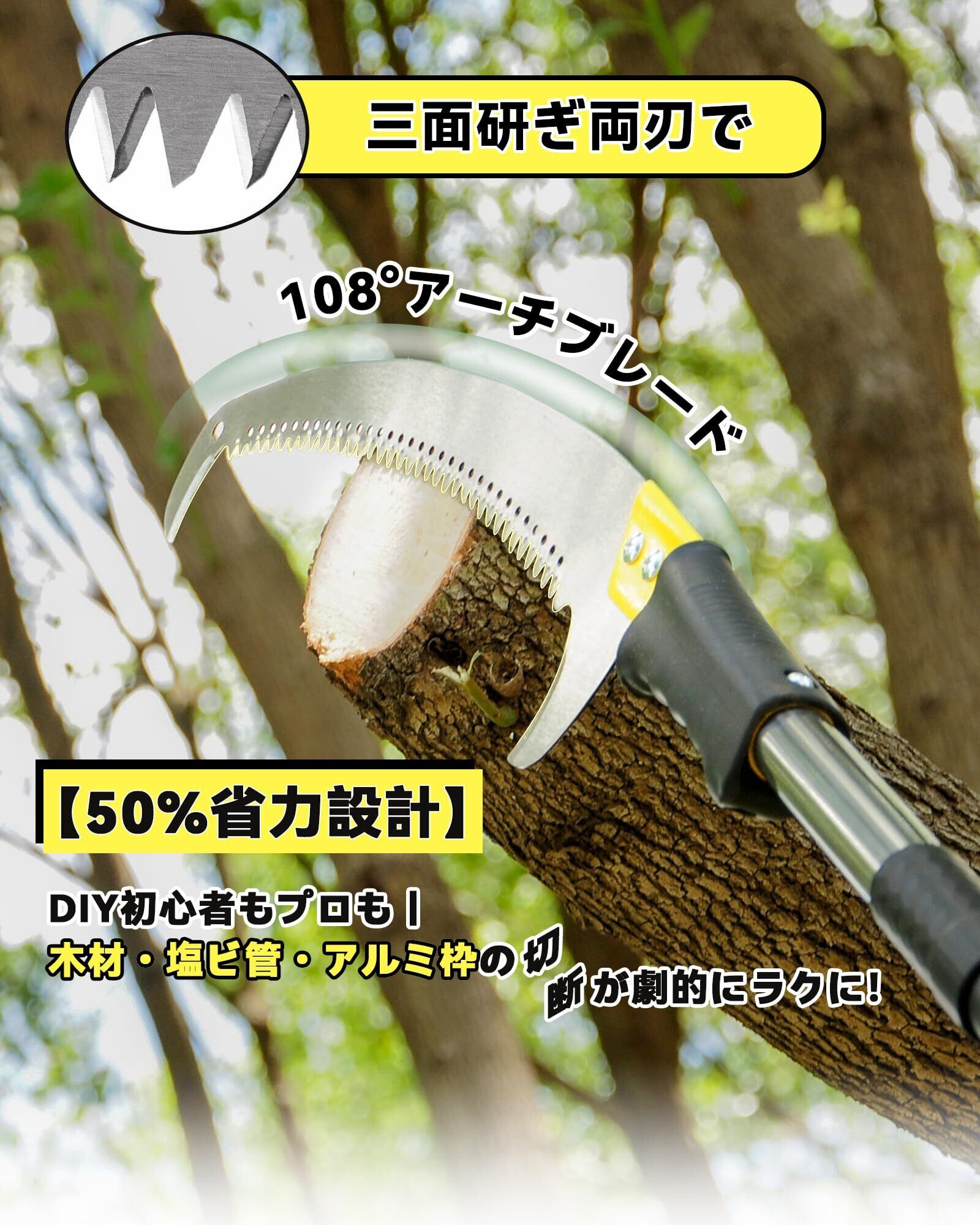 多用途に活躍: 庭木や庭園の剪定はもちろん、芝生やパティオのメンテナンス、林業やプロ現場の作業にも対応可能です。1本で高所・低所を問わず幅広い作業ができるため、家庭用から本格的な作業まで長く活用できる万能ノコギリです。