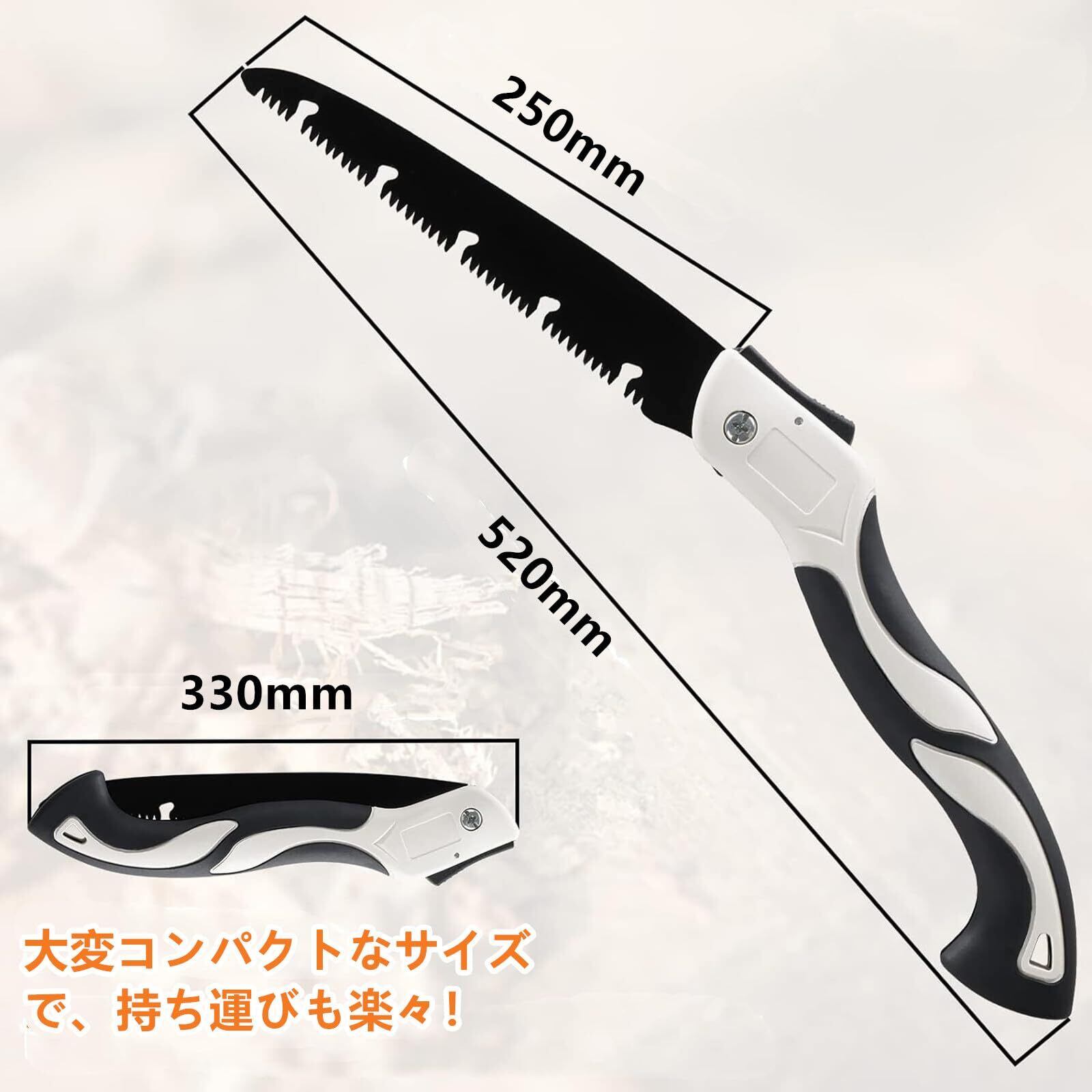 【適用シーン】庭木、造園、果樹、アウトドア、仮枠、乾燥木材の剪定に適用され、枝切りやキャンプの薪作りにもピッタリ!