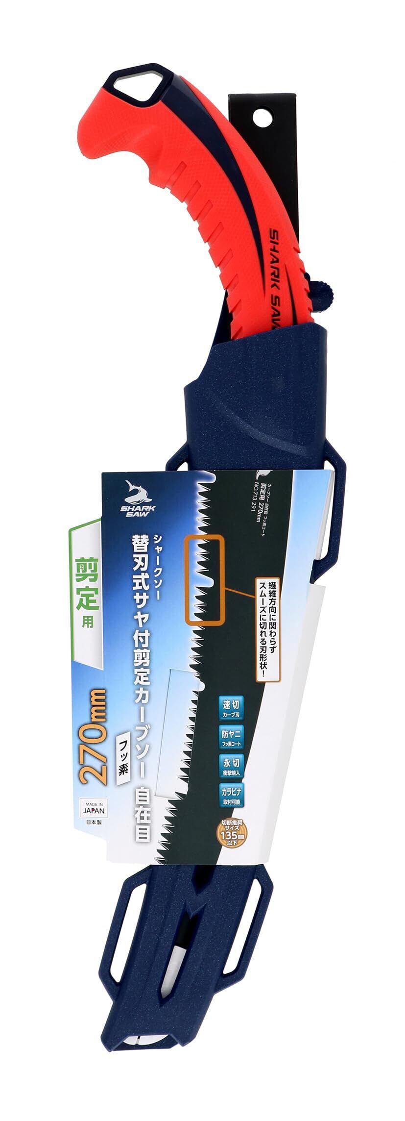 高儀(Takagi) シャークソー 替刃式 サヤ付 剪定 カーブソー 自在目 フッ素 270mm 日本製 のこぎり ノコギリ 鋸 片刃 速く切れる 防ヤニ 全方向 切断 園芸 庭木 果樹 永切 カラビナ 取り付け可能 | KSショップ