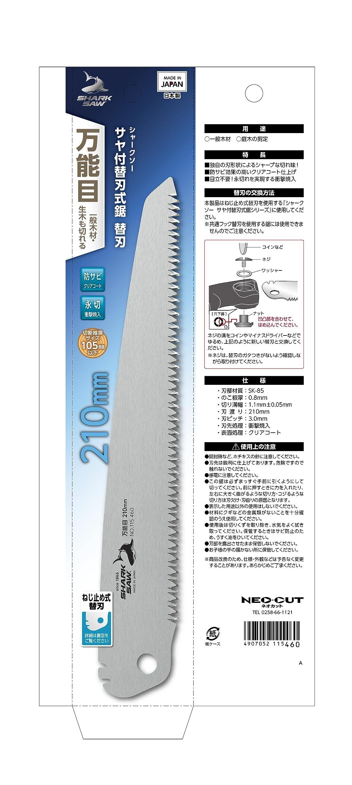 高儀(Takagi) シャークソー サヤ付 替刃式鋸 万能目 210mm 日本製 のこぎり ノコギリ 片刃 木材 生木 庭木 剪定 防サビ 永切
