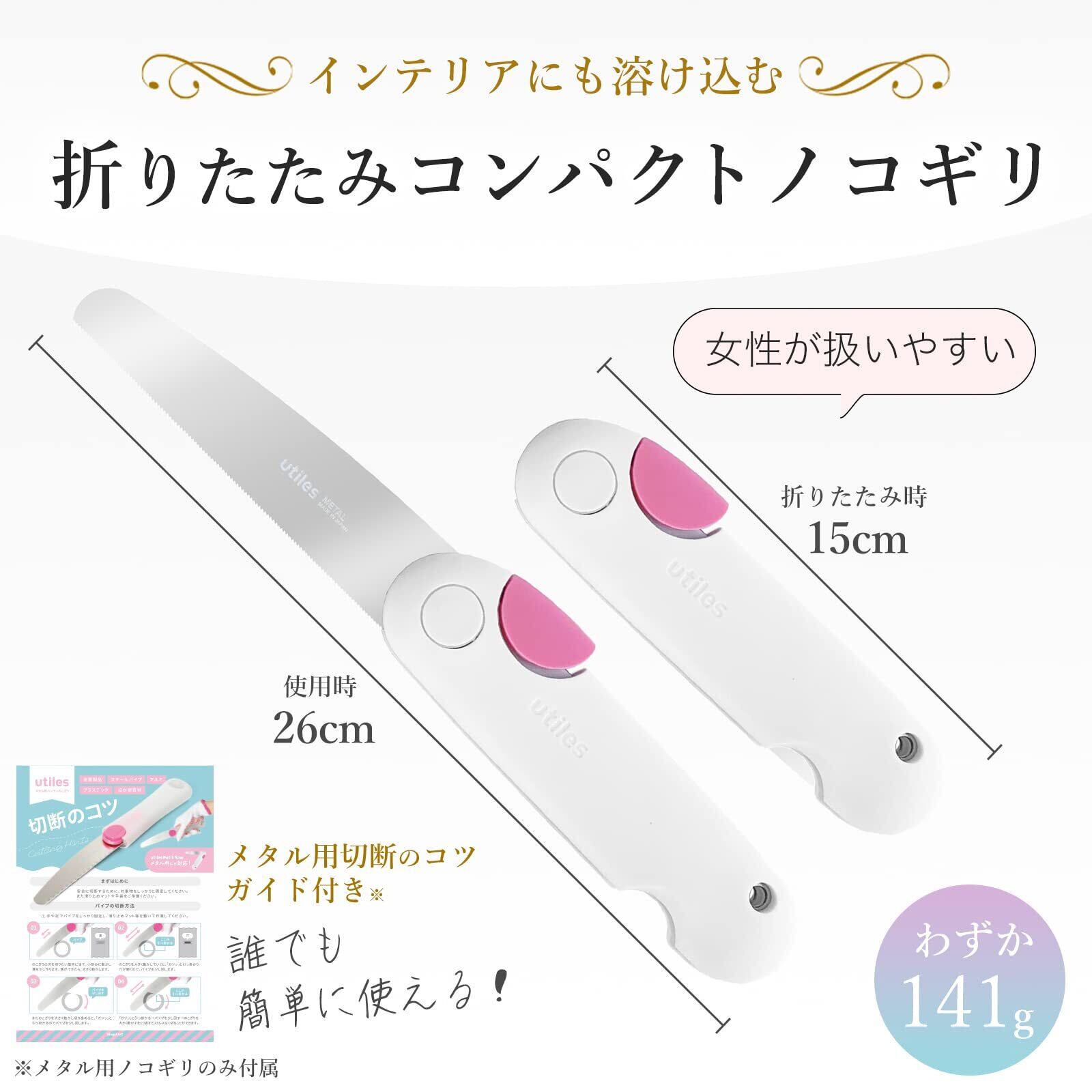 KSK utiles petit saw ユーティレス ポケットサイズ 折りたたみ ハンディ ノコギリ オシャレなのこぎり 金属 プラスチック 日本製 ピンク/メタル用 PT-24