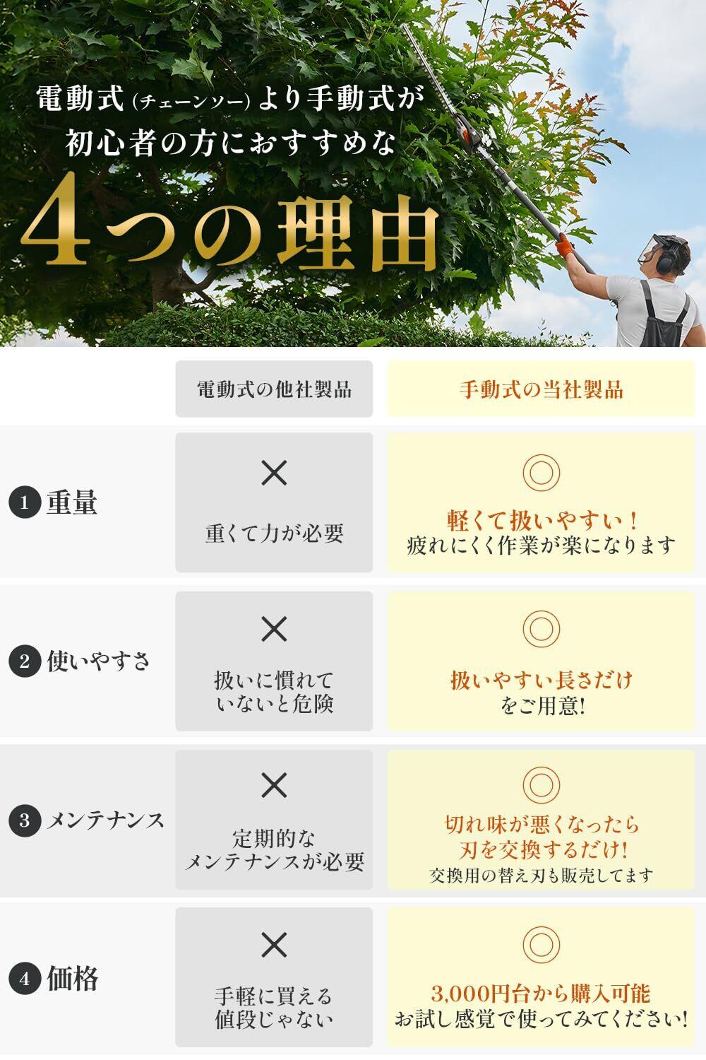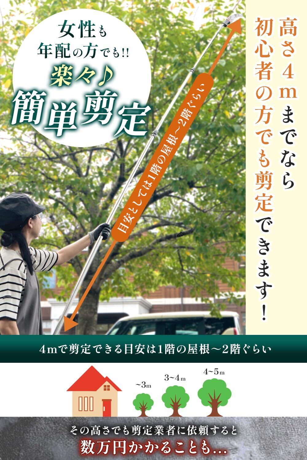 高枝切りノコギリ 【植物育成のプロW監修】「初心者専用x三面歯状でスピーディーに切断x扱いやすいサイズ感」 (4m)