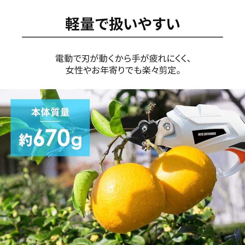 軽量・電動だから手が疲れにくく、軽い力で剪定可能。