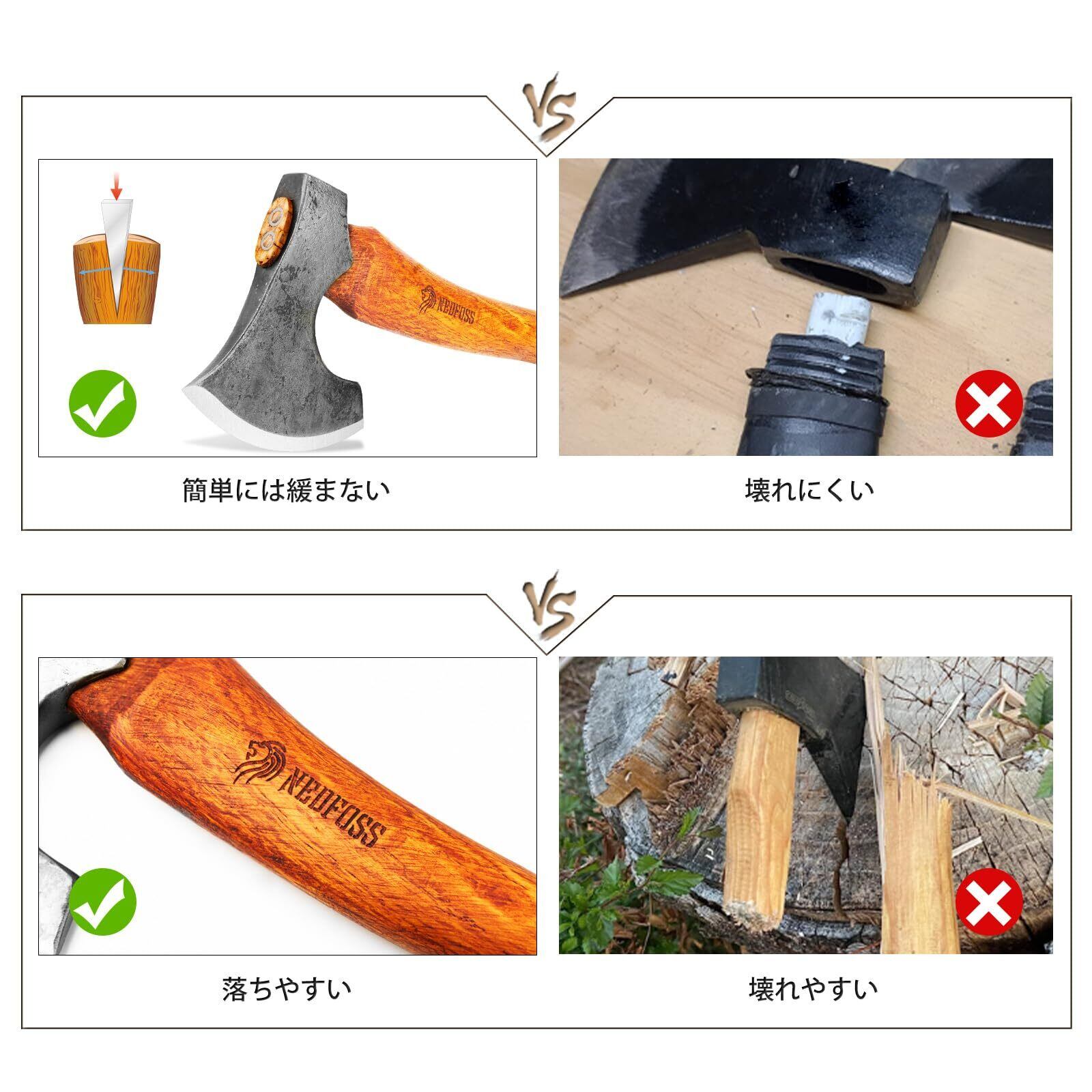 使い勝手がいい万能斧:ちょうどいい長さと重さで、切れ味も良く、女性でも簡単に使えます。薪割りを楽にしましょう!