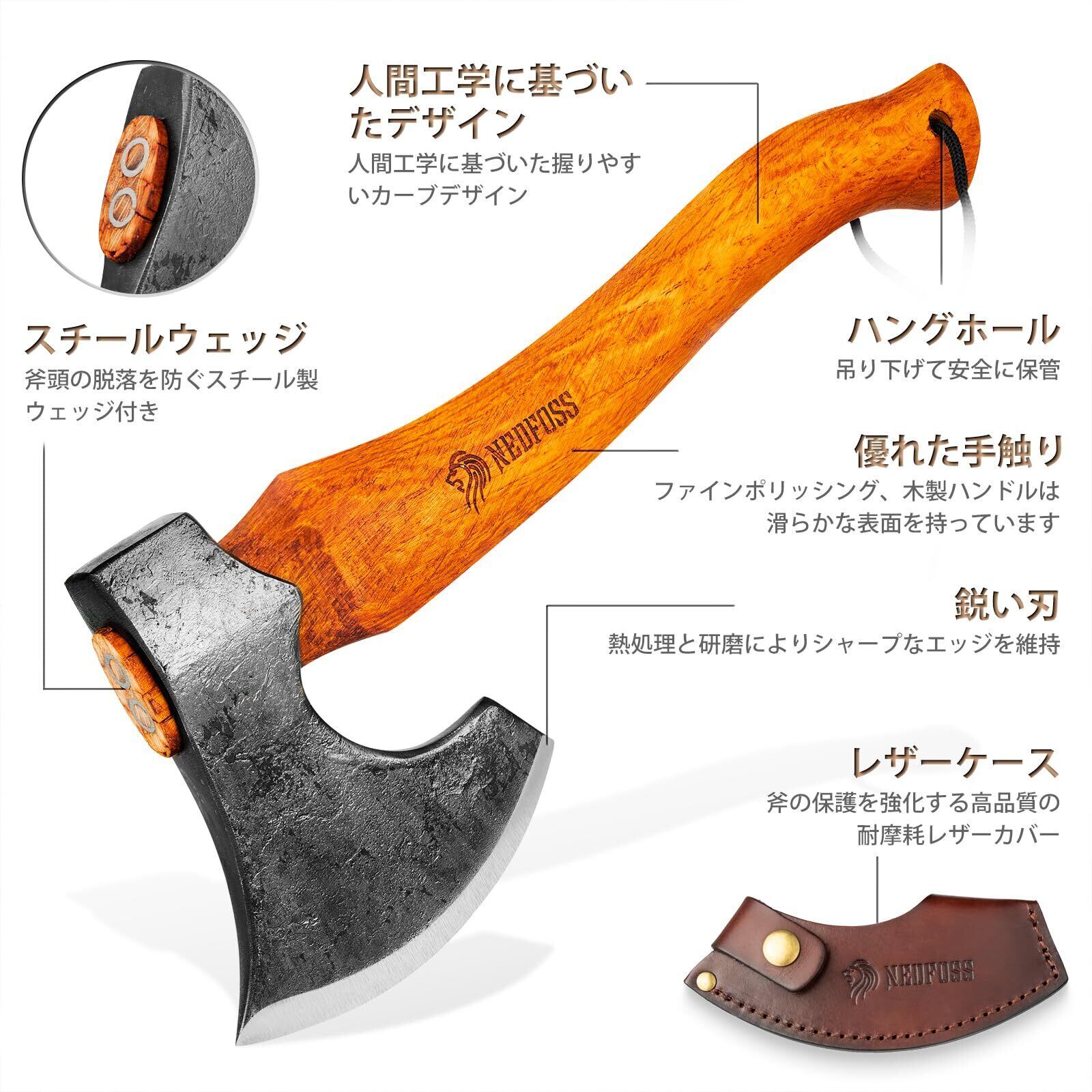 キャンプ 斧 焚き火 手斧 38cm NEDFOSS マンモス13 鍛造斧 薪割り斧 ブナ柄 専用本革カバー付き おの アウトドア 薪割 枝打ち キャンプ用品 作業斧 手工具 (マンモス13) | KSショップ