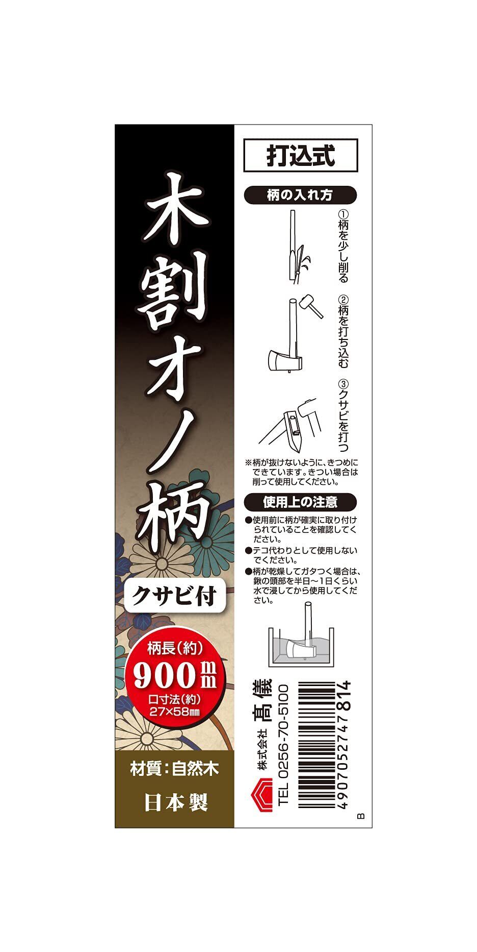 高儀(Takagi) 木割オノ柄 クサビ付 900mm