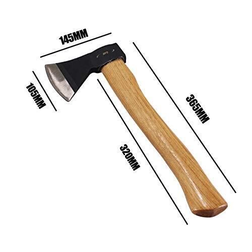 【仕様】:全長:36.5cm、木製グリップ長さ:32cm、頭の長さ:14.5cm、総重量:約800g、斧の重さ:約600g。