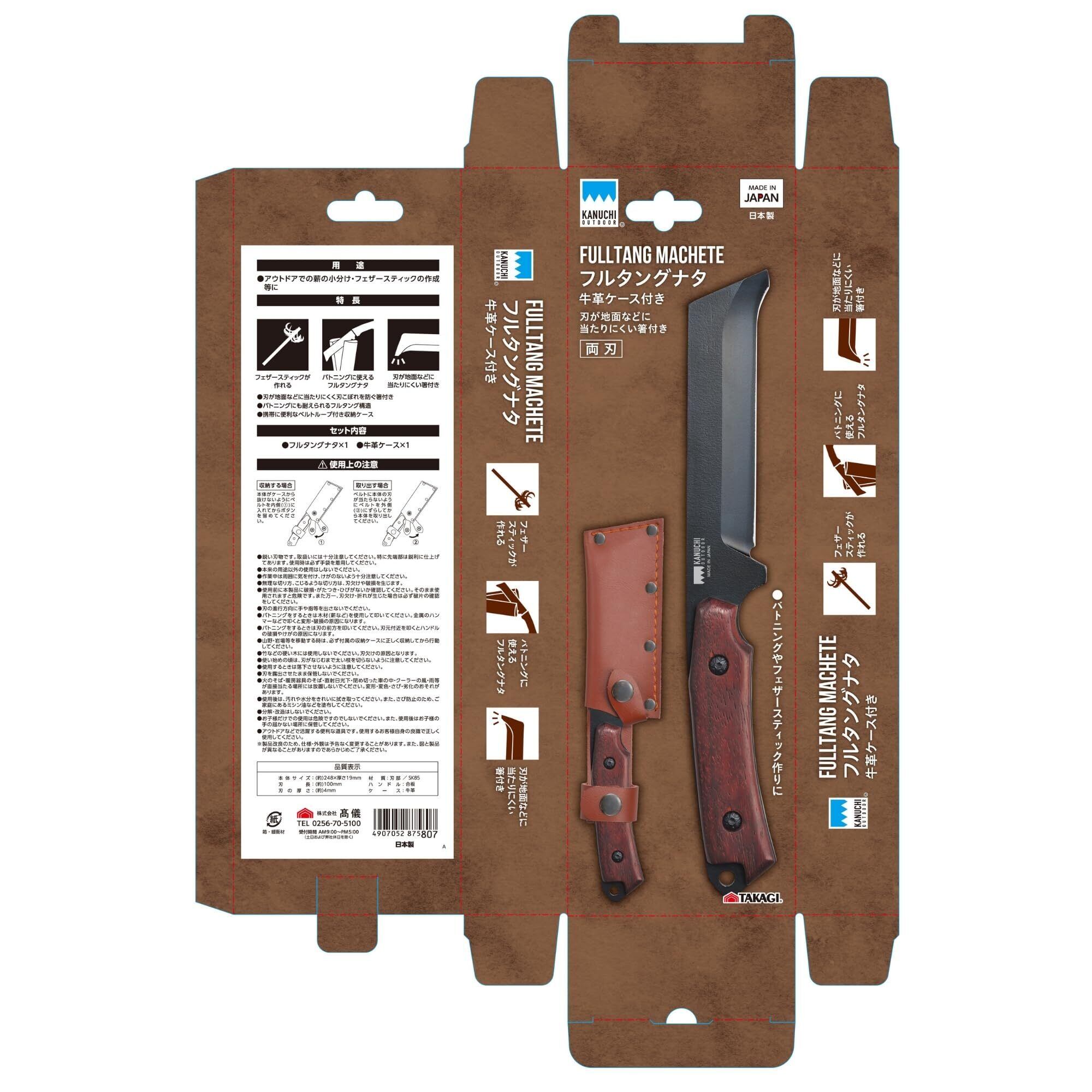 高儀(Takagi) KANUCHI OUTDOOR フルタング ナタ 牛革ケース付き ベルトループ 携帯に便利 両刃 刃が地面に当たりにくい 刃こぼれを防ぐ 箸付き 日本製 たかぎ TAKAGI | KSショップ