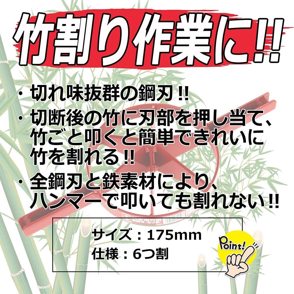 ・切断後の竹に刃部を押し当て、竹ごと叩くと簡単・きれいに竹を割ることができる