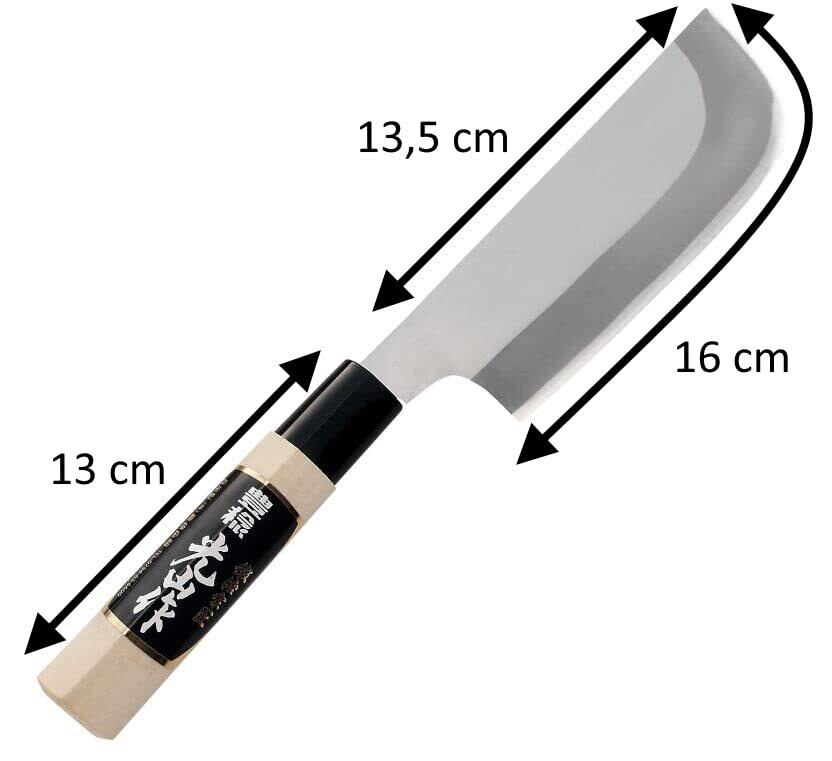 ●錆びにくいV金ゴールド鋼使用。鍛造仕上げで薄く包丁の先まで刃がついています。キャベツ、白菜や錆を嫌う野菜の収穫に