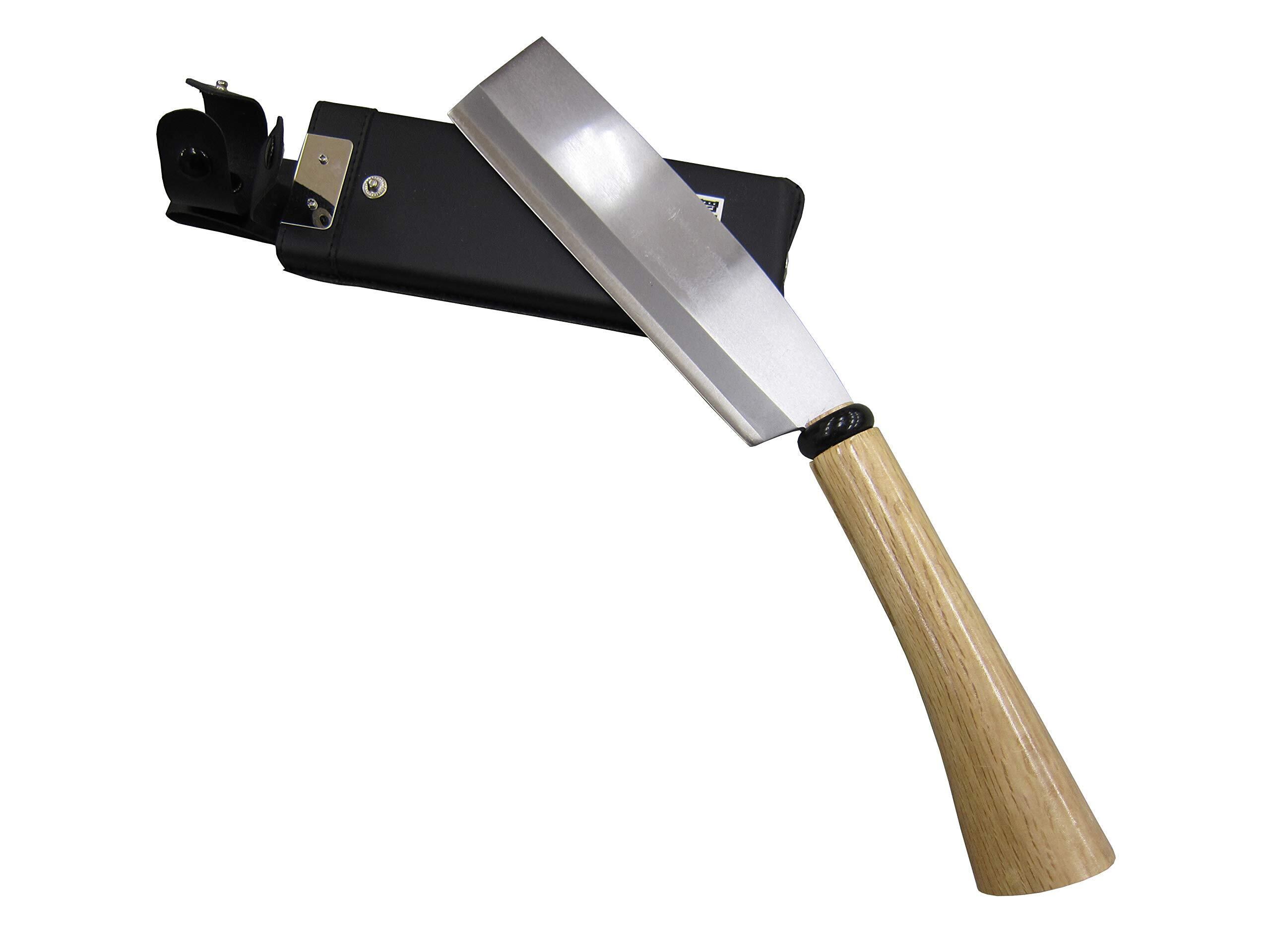 [両刃鞘鉈]<br>両刃ナタは割る事を主な目的として考えられた道具。刃先が厚く、丈夫で「薪割り」「枝打ち」などの作業に適している。