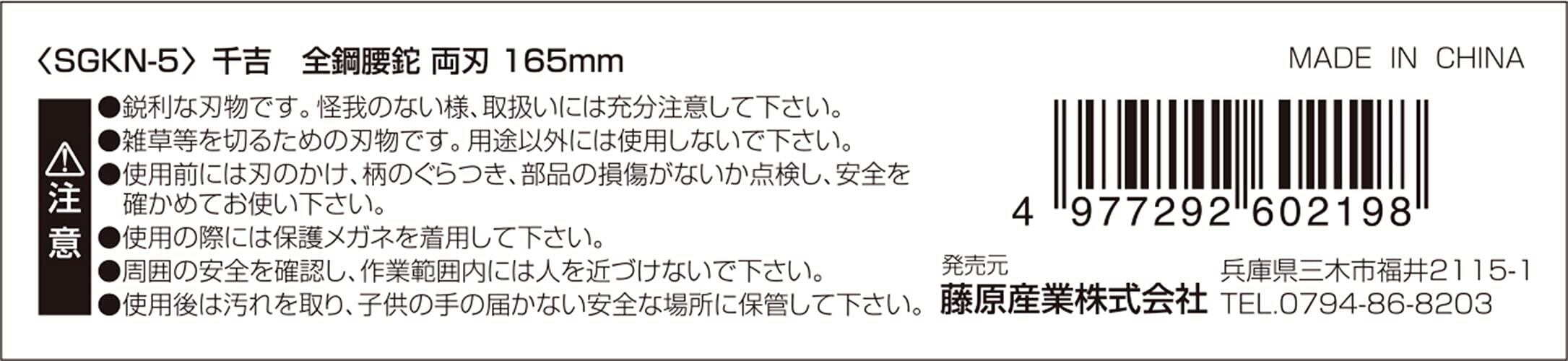 千吉 全鋼腰鉈 両刃 165mm SGKN-5