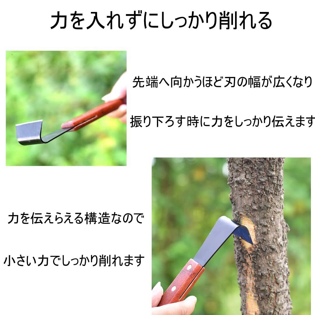 木の皮を削るための皮削りです。害虫対策、害虫駆除での粗皮削り等の作業にご使用ください。コンパクトで軽いので長時間の作業にぴったり。刃の部分も幅5㎝と小さいので木の入り組んだり出っ張ったりして刃が入りにくい部分もスイスイと削れます。