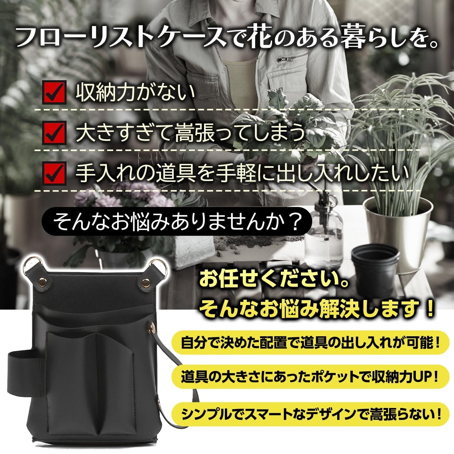 Quiear(クワイヤー) フローリストケース ガーデニングポーチ 花屋 シザーケース トリマー シザーバック 腰掛けポーチ (ブラック)