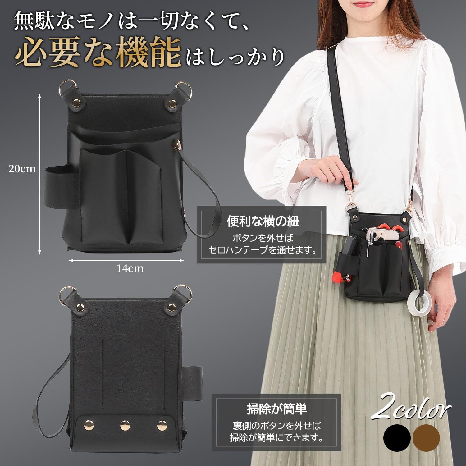【使用感】革素材で大人の落ち着きと高級感のあるシンプルデザインで仕上げています。肩掛け紐は長さ調整で腰に巻くこともでき、持ち運びも簡単です。
