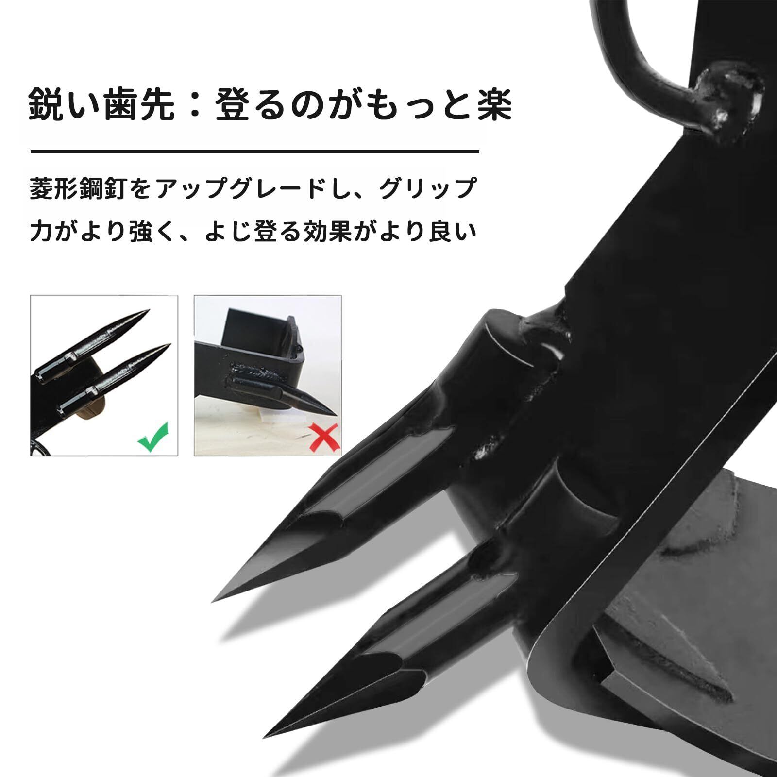 【品質】30日間の製品品質と1年間の製品を提供していますのでご安心ください。 使用中に問題が発生した場合は、アフターサービスを提供し、メールでご連絡いたします。【注意事項】※登るときはまず低いところで練習して、正しい力点を見つけて、上手に使ってから高いところに登ることができます。私たちの材質は鋼板なので、使用する時、半ズボンを着ないで、できるだけ長いズボンを着て、そして多く保護をして足の上で準備します。