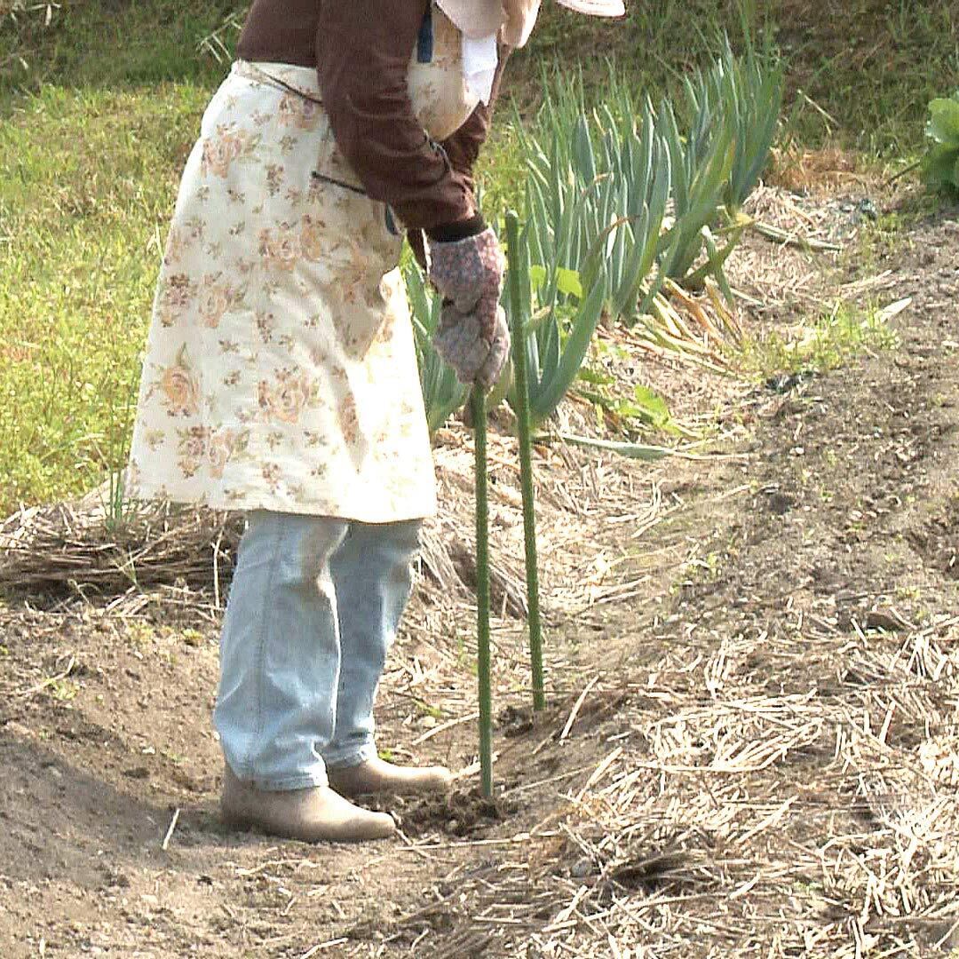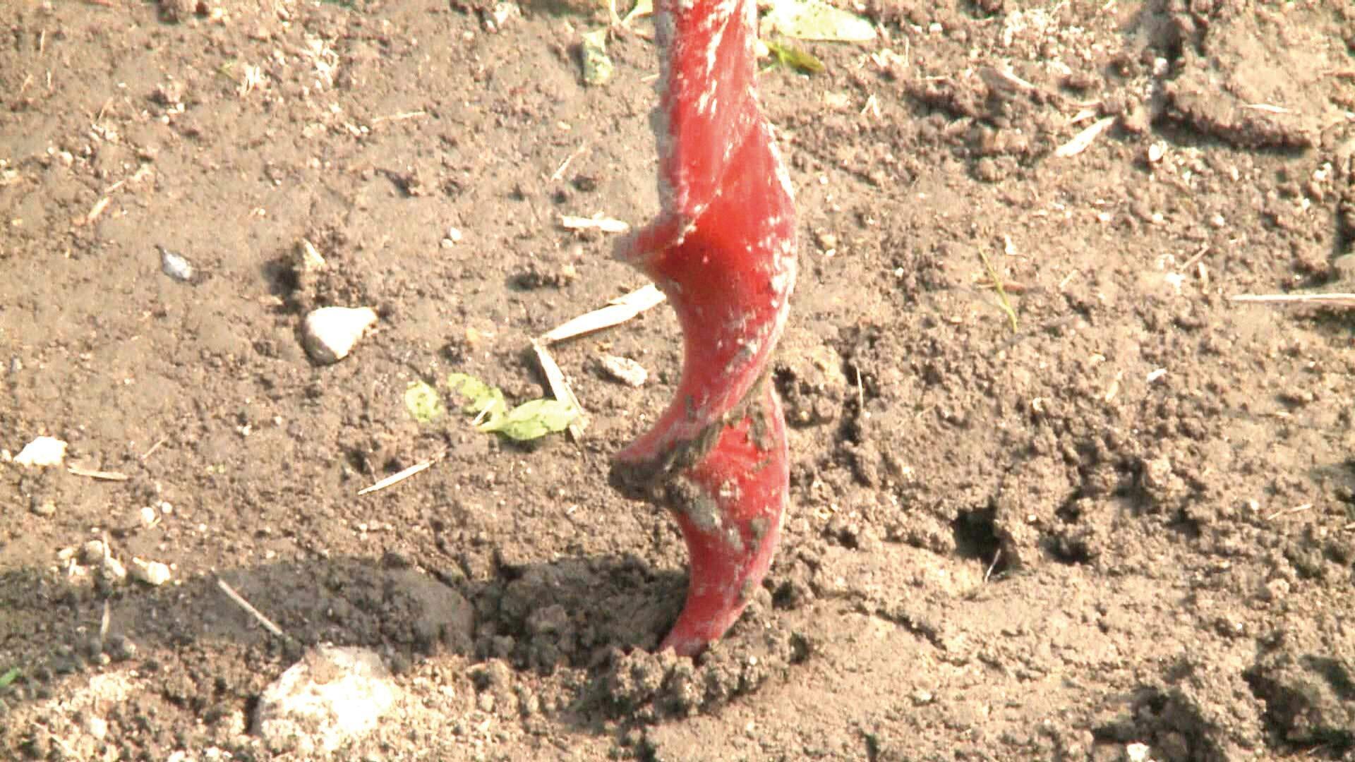 硬い土、たくさんの量、大変な支柱差し作業が楽々可能。