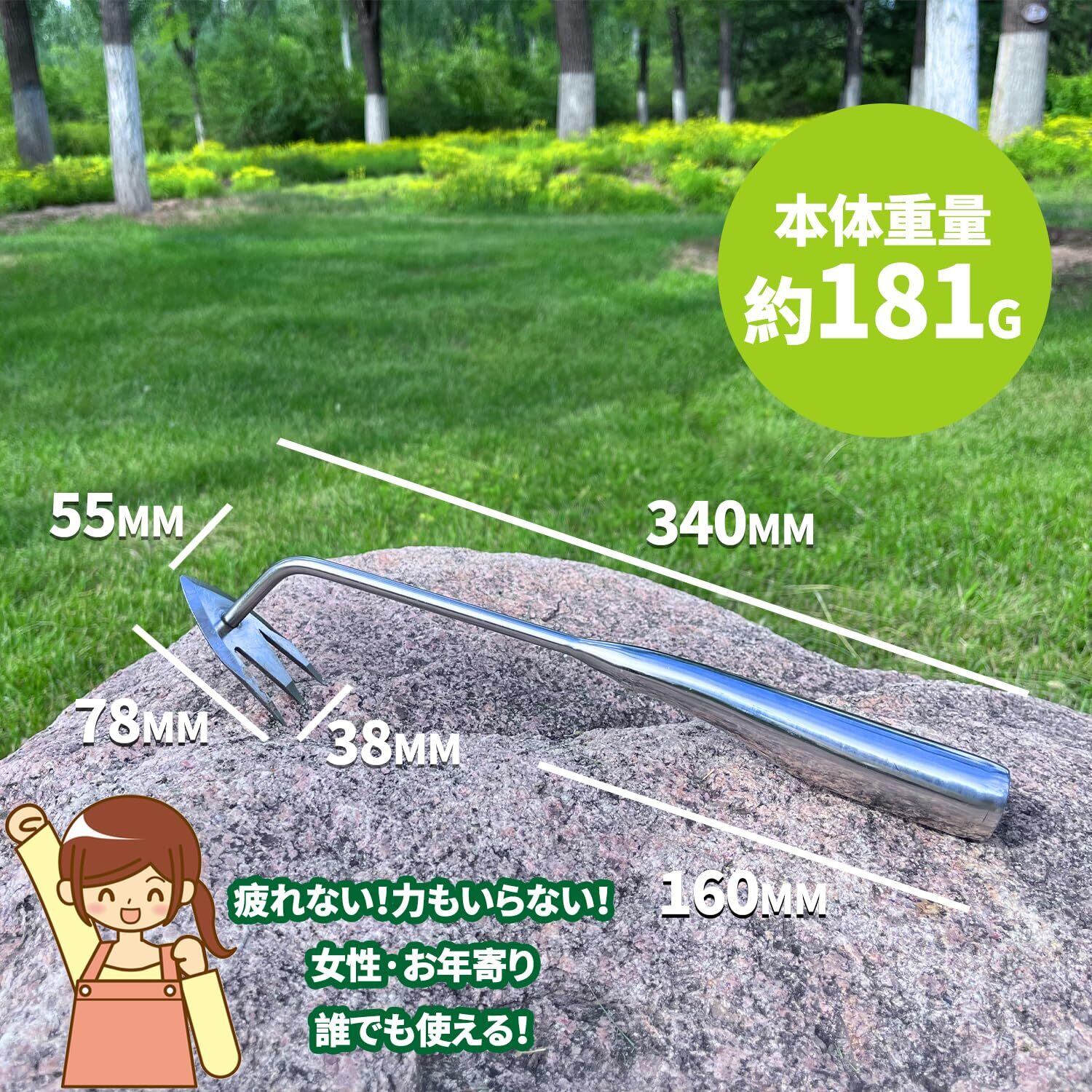 Hueapion 草取り道具 雑草ブラシ 雑草取り器具 全長340mm 草取り 草刈り ステンレス製 片手鍬 草取りグッズ 根こそぎ 便利 コンパクト耕作鍬 除草工具 園芸用