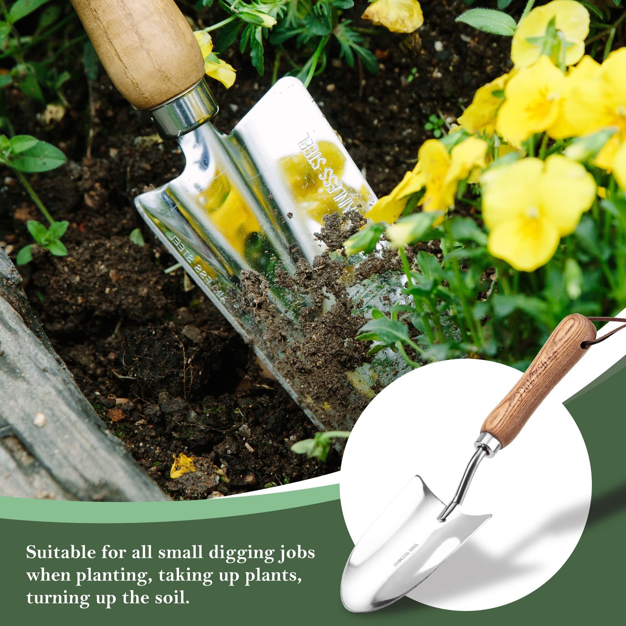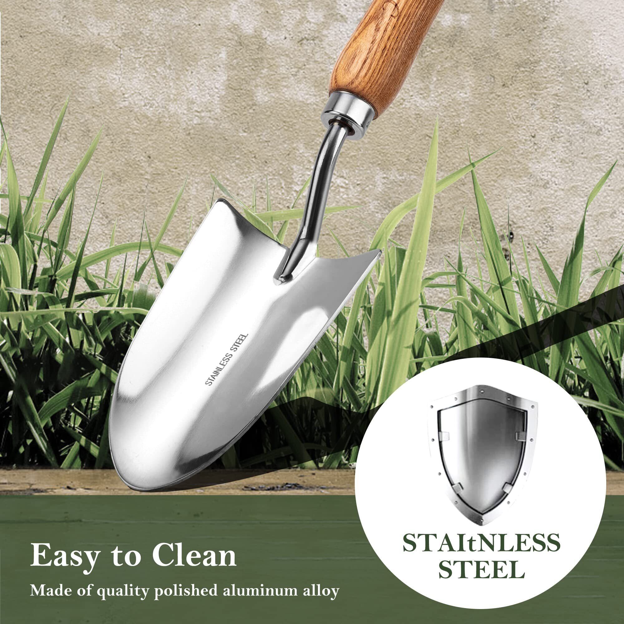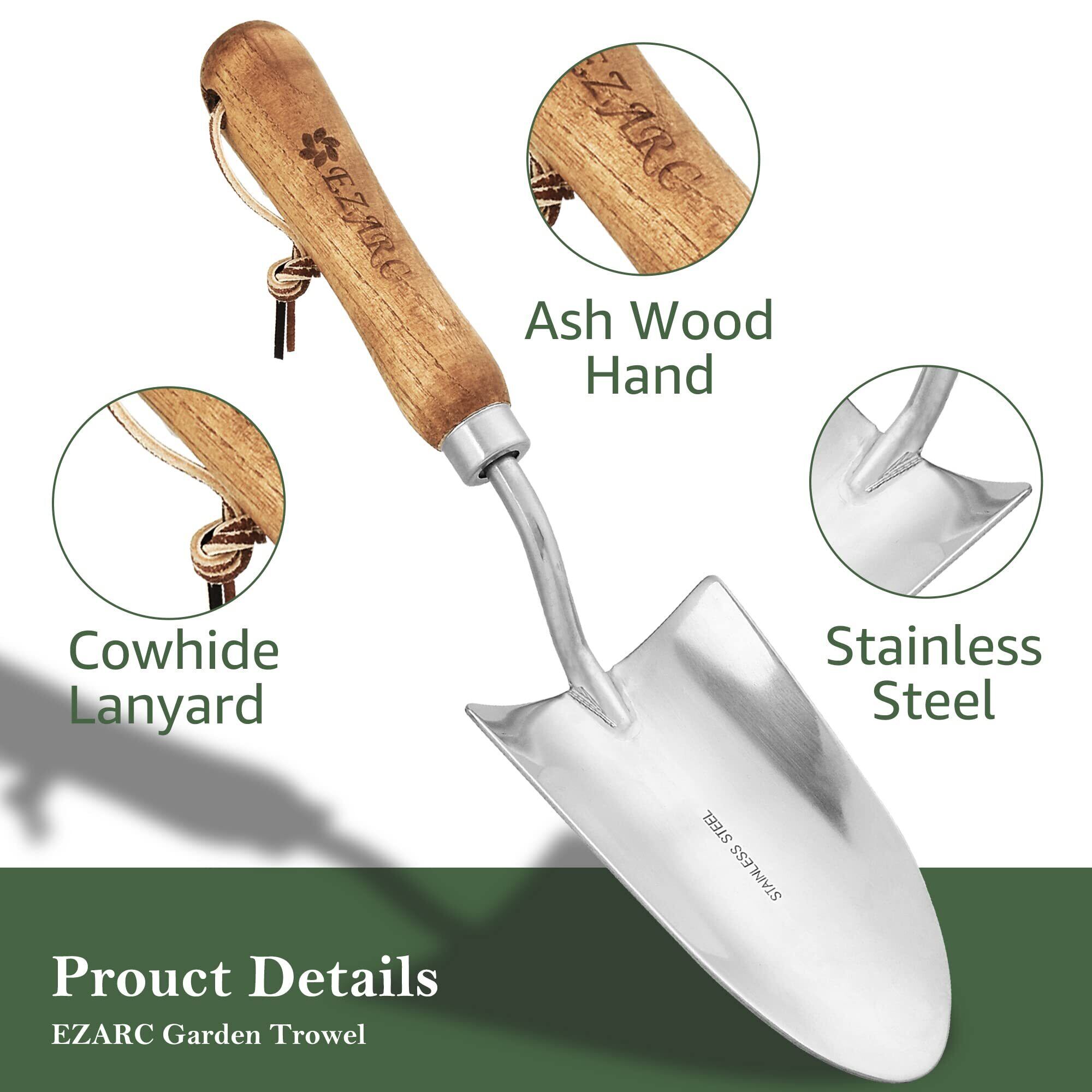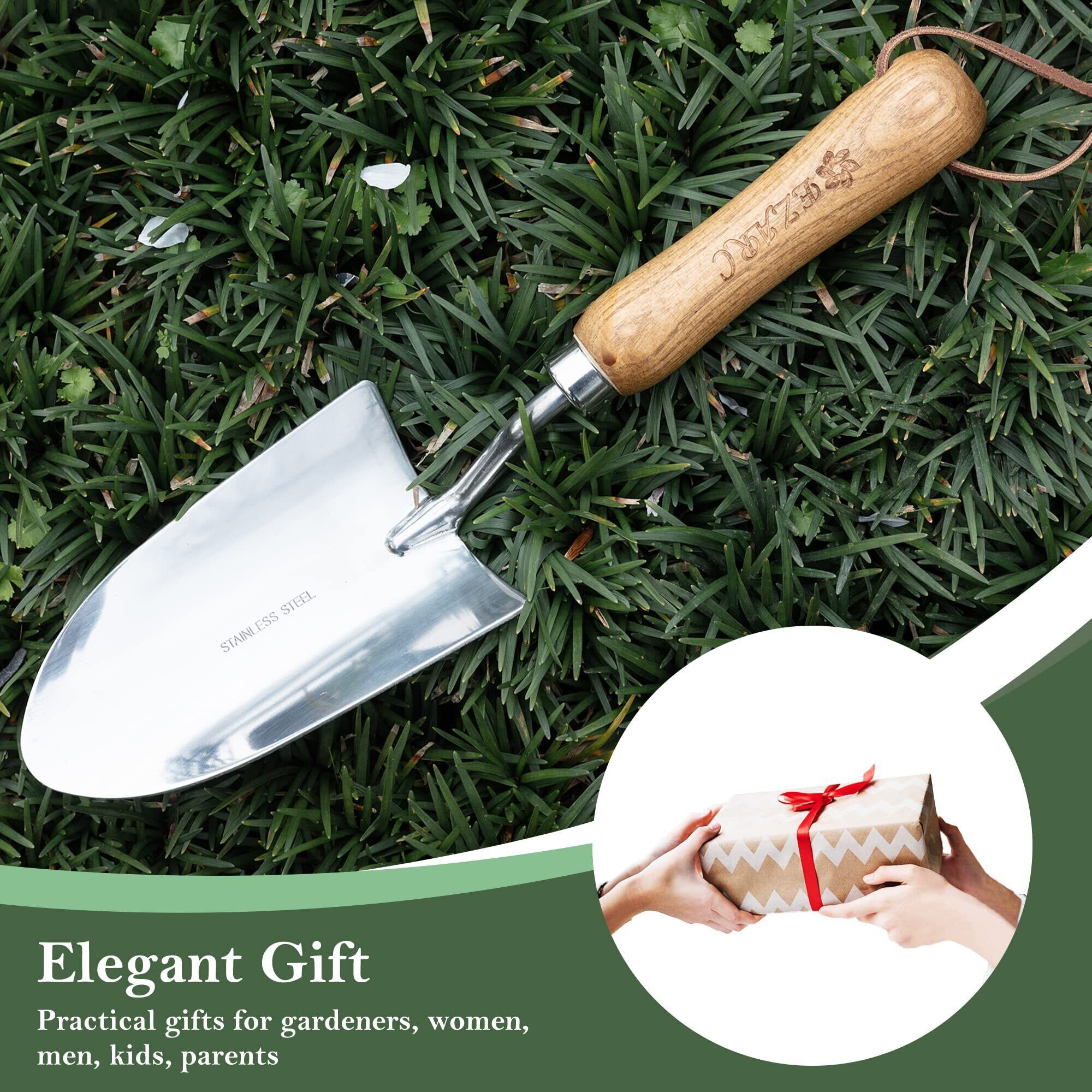 EZARC スコップ 園芸 防錆 ステンレス製 木製ハンドル 植え替え おしゃれ 頑丈 ガーデニングツール
