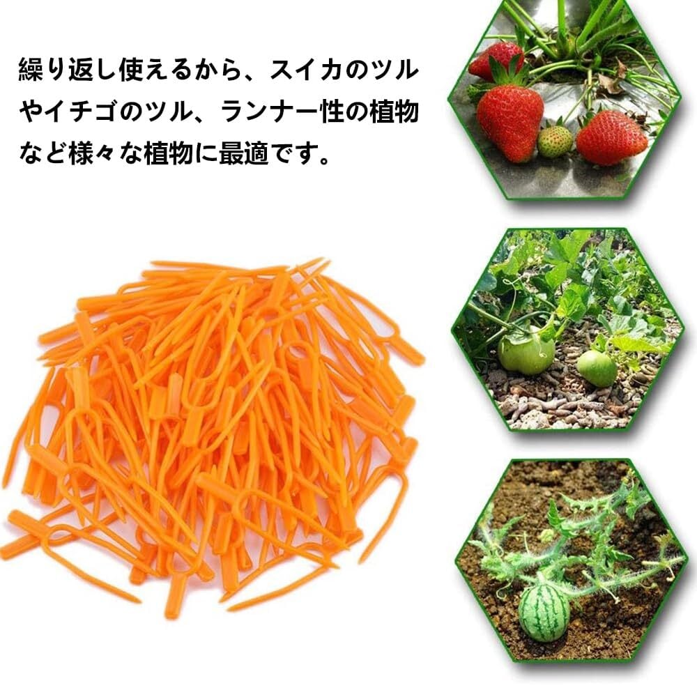 園芸クリップ 110個入り いちごランナーピン 固定フォーク つる植物 スイカ トマト 誘引作業用 農業・ガーデニング DIY 再利用可能 (65 *17mm) (オレンジ) [並行輸入品]