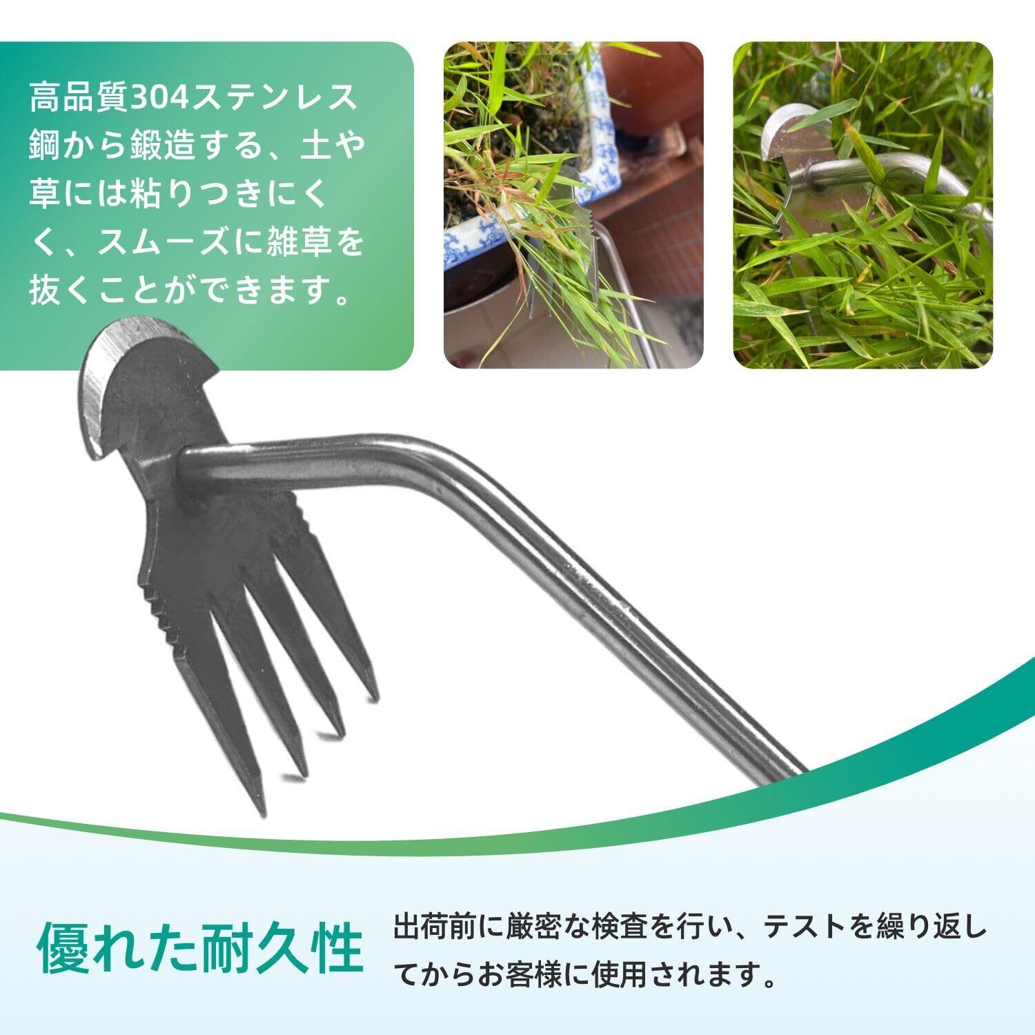 【快適な作業体験】人間工学に基づいて設計された長いハンドルは操作性に優れ、手間なく雑草を取り除くことができます。先端が尖っているので、土に深く食い込むことができ、しっかりと雑草の根をつかむことができます。