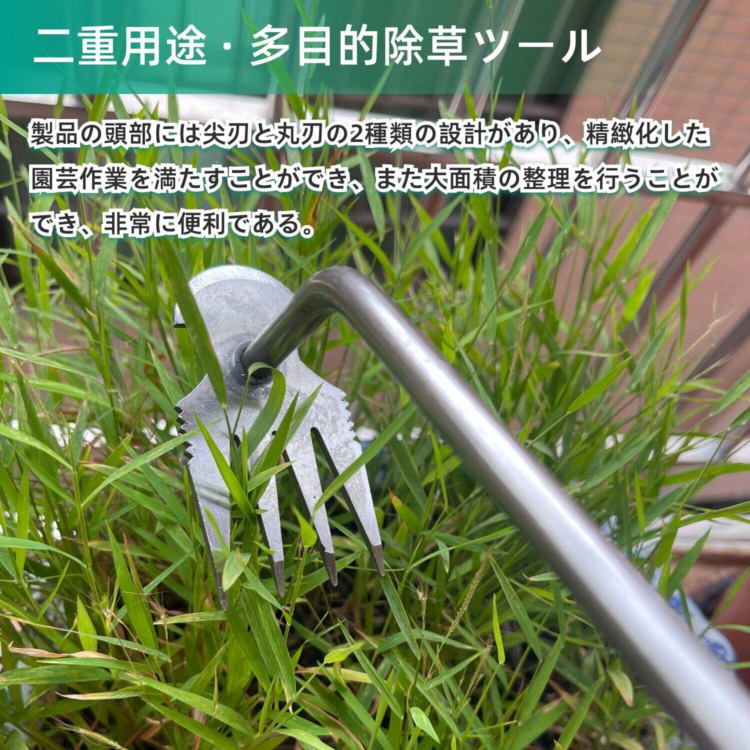 【多目的除草ツール】人間工学に基づいて設計されたハンドルと尖った先端により、雑草を簡単に取り除くことが可能です。延長デザインのハンドルは広い範囲での作業に対応し、さまざまな作業環境に適しています。