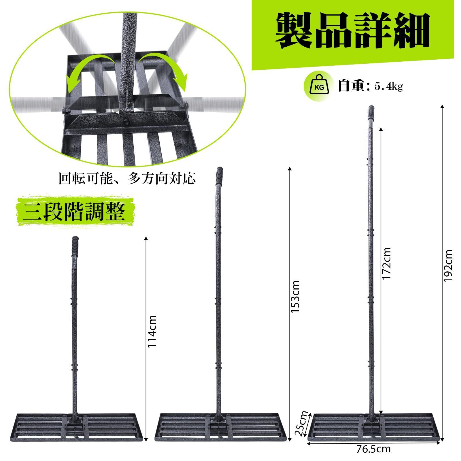 CHANGE MOORE レベリングレーキ 芝生レベリングレーキ【日本語説明書付き】 180°回転可能 三段階調整 芝生レベラー 水平芝生ツール スチール 炭素鋼 芝生レーキ 芝生ケア レーキ 土や土の表面を簡単に水平に 裏庭 庭 ゴルフコース カウス 農場 牧草 芝生用 土 砂 汚れ 表面 高耐久 労力節約 76.5cmx25cmx192cm