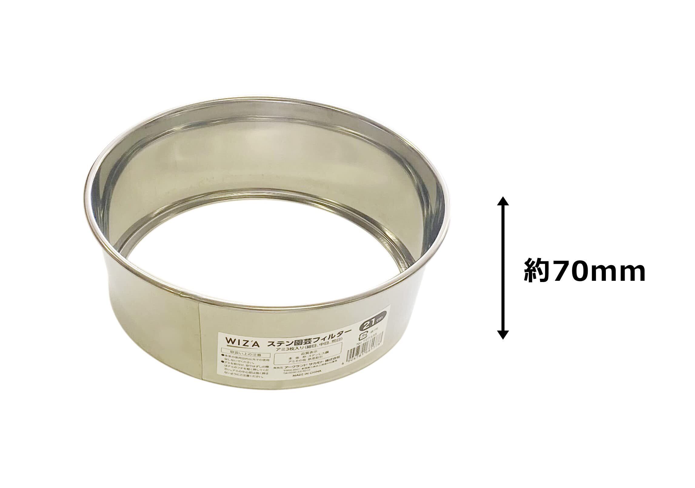 WIZ'A アークランドサカモト ふるい 篩 ステンレス製 園芸フィルター 21cm 網3枚入 細目 1mm 中目 3mm 荒目 5mm 727335