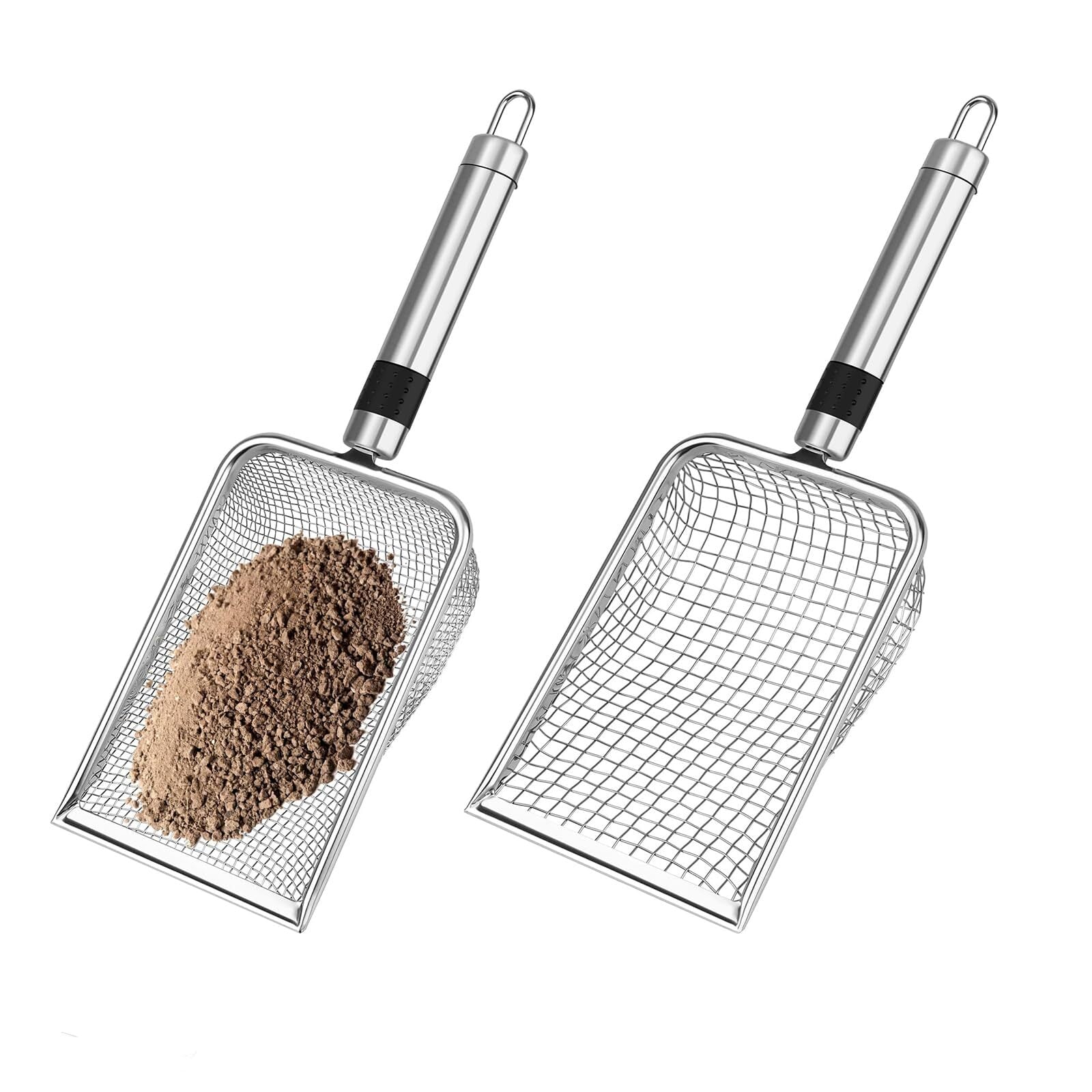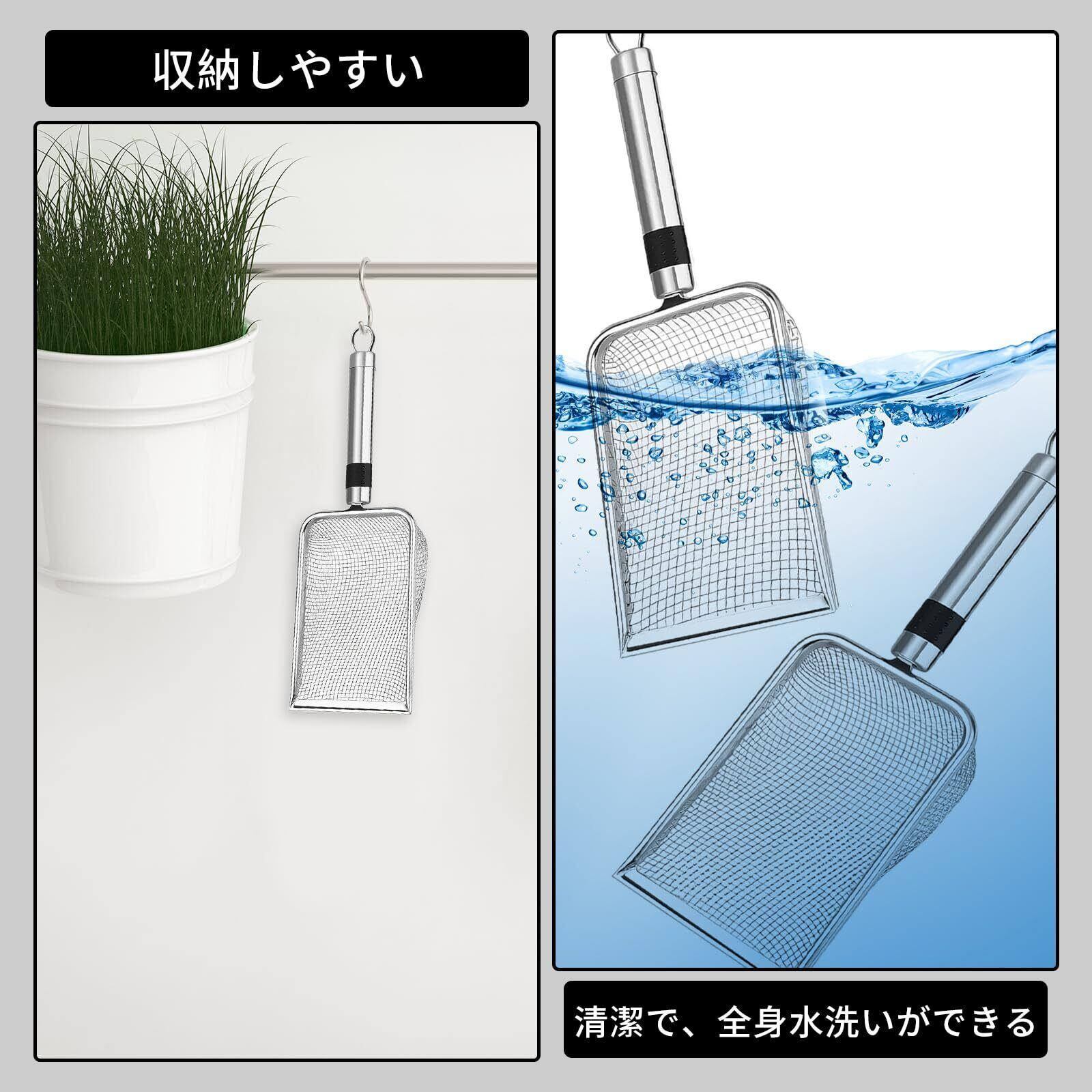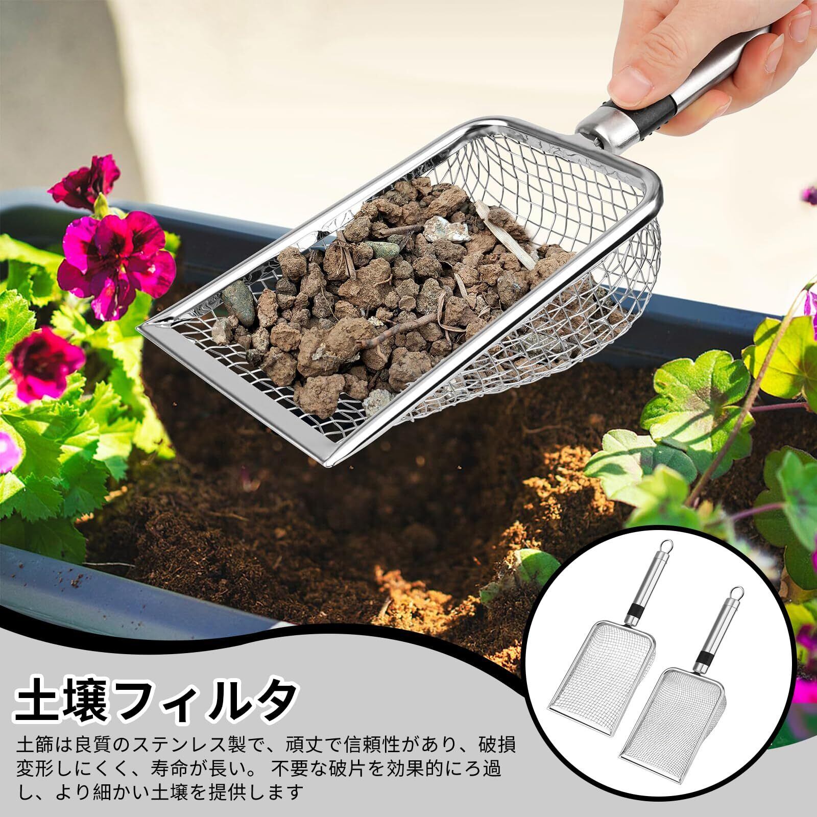 【耐久性に優れたステンレス製】高品質ステンレス素材を使用した頑丈な構造で、長時間使用しても変形しにくく長持ちします。金属メッシュの特殊設計により、石や枝など様々な不純物を効果的に選別・ろ過でき、土壌の品質をします。