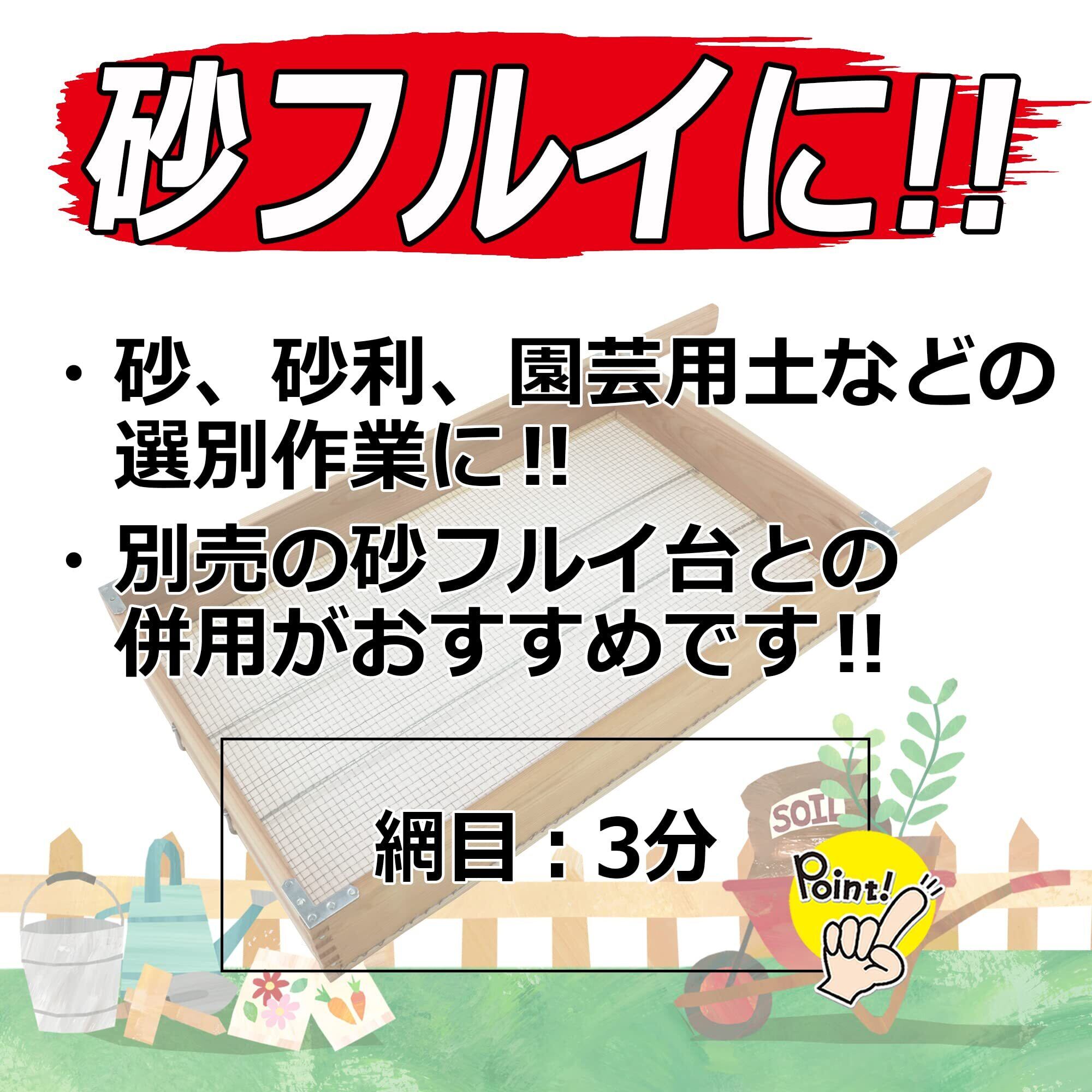 ・砂フルイ台(別売)を一緒に使用すると、楽にふるい作業ができる