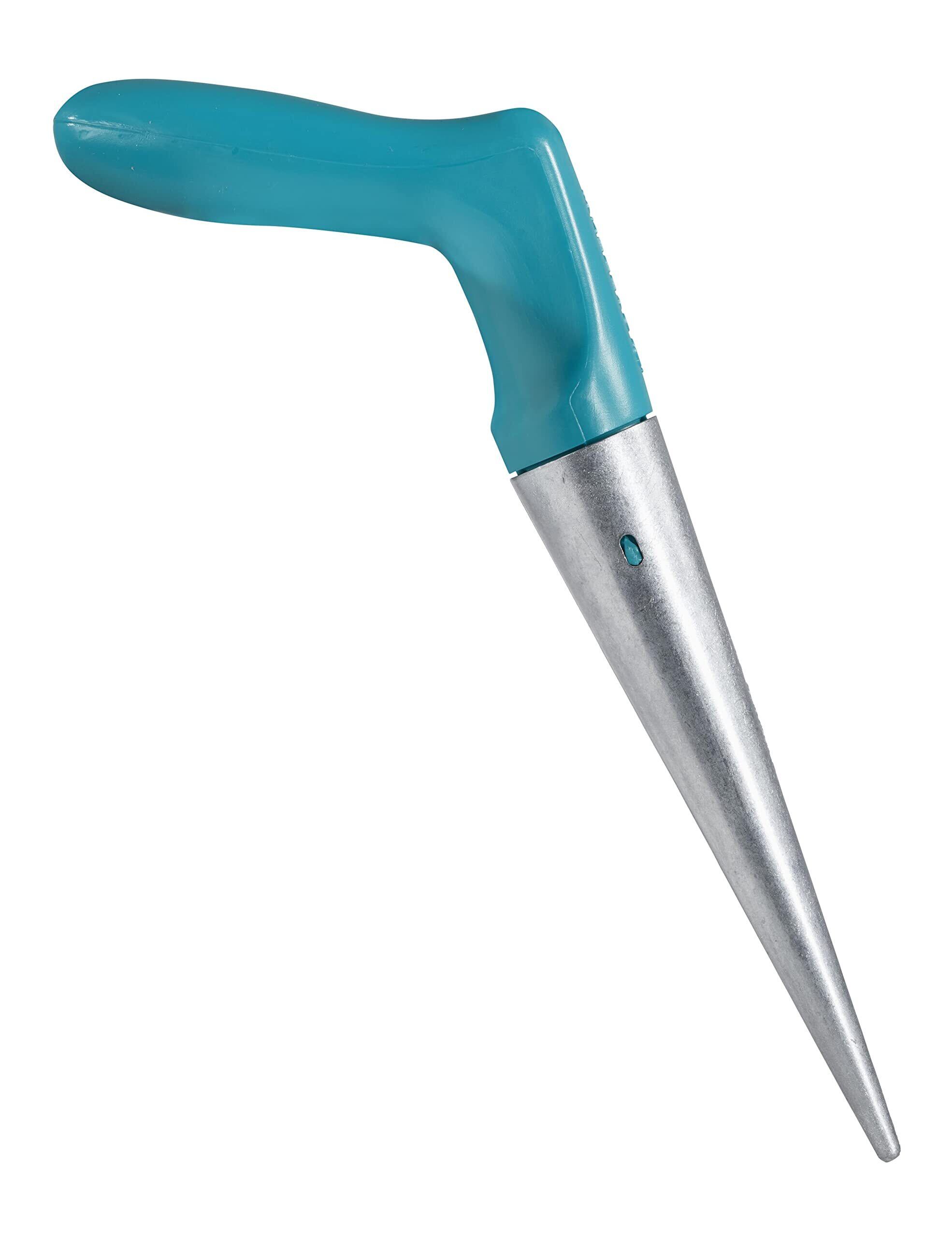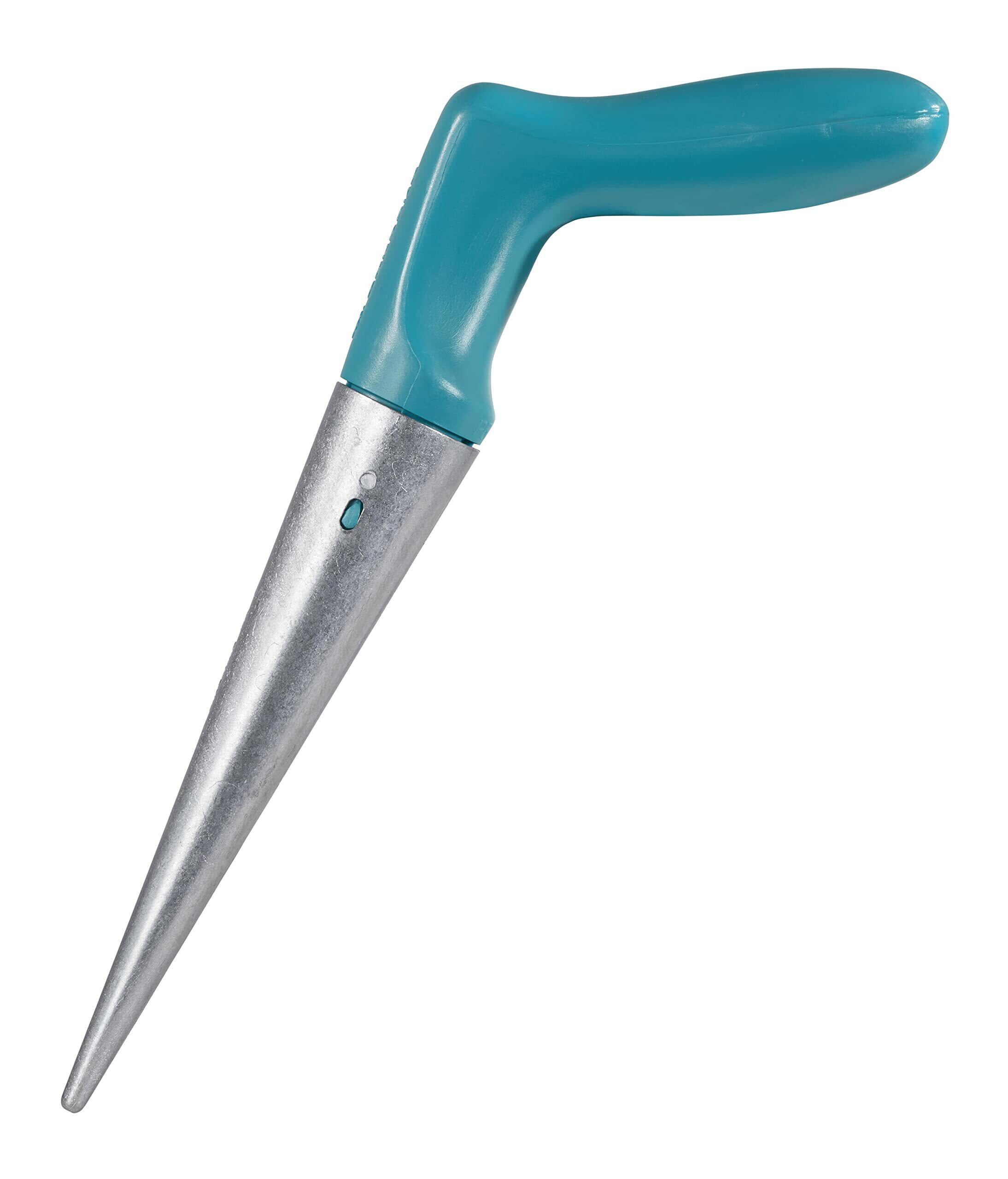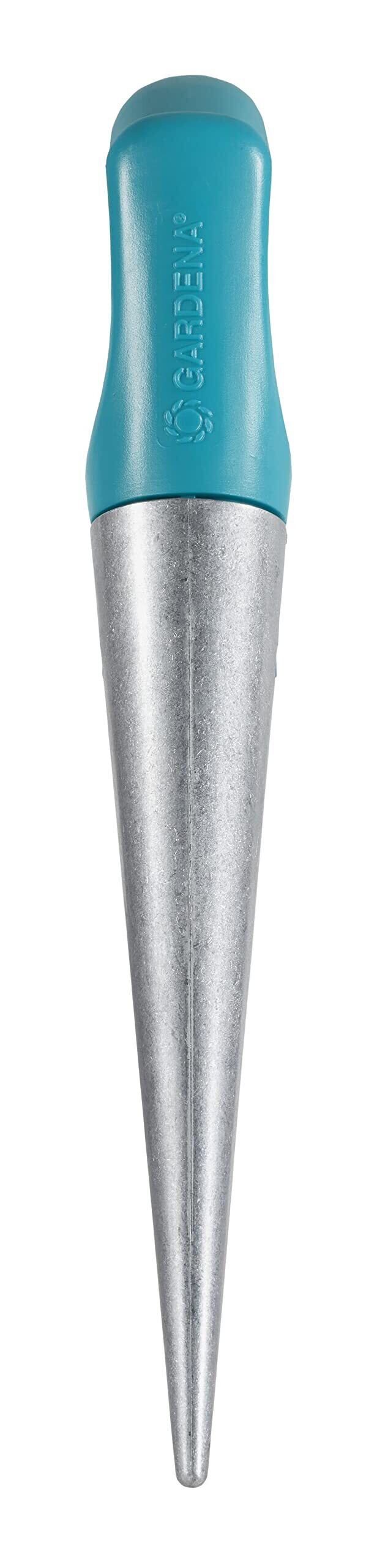 GARDENA プランター(種まき用穴堀り器)~種まきの穴を規則的に簡単に掘るのに最適。 材質は頑丈で防錆性のある亜鉛ダイキャスト。最大19.5cmの深さまで掘り、植物を挿入するための穴あけ器。 持ちやすい形状で防寒性のプラスチック素材で、人間工学に基づき設計されたでハンドル。最大期間25年。