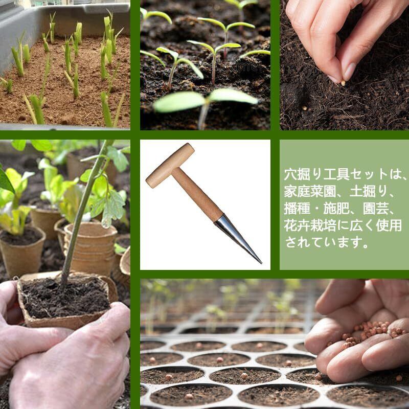 穴掘り機 ハンド ディバー 木製ハンドル付き 穴あけ器 苗穴掘りツール 万能 穴掘り 土掘り ツール 穴掘りツール 家庭用ガーデニング工具 播種 移植 植栽 苗床 庭園栽培用 木製ハンドル付き、クローム コーティング ステンレス製 1個入り