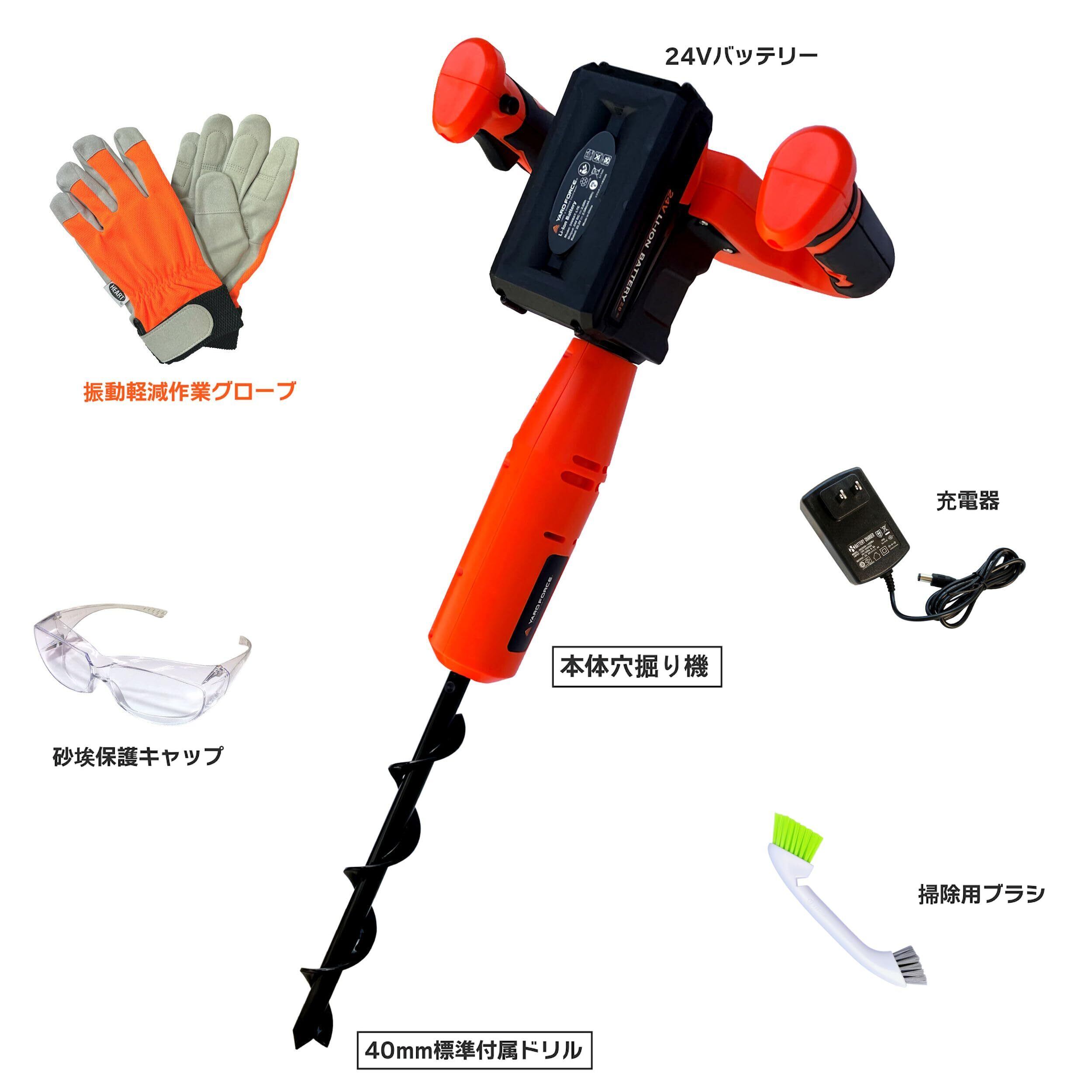 ■メーカー標準セット内容:本体、径40mmドリル、24Vバッテリー、充電器他