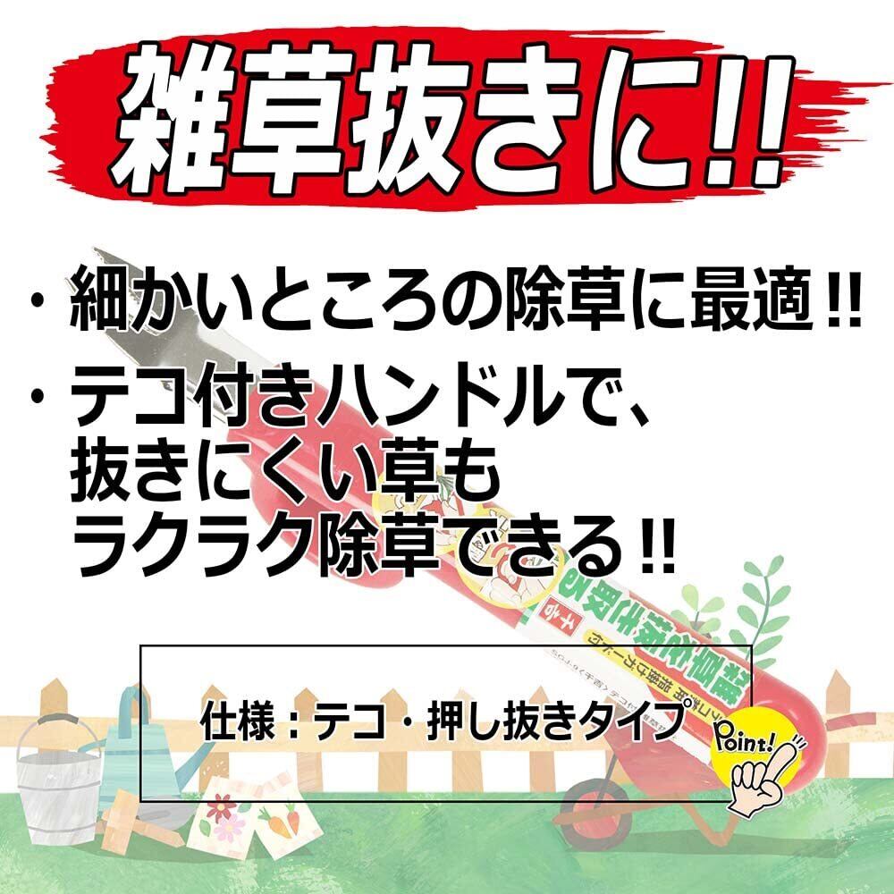 特徴:テコ兼用指掛け付きハンドル採用で、抜けにくい草も楽に除草できる