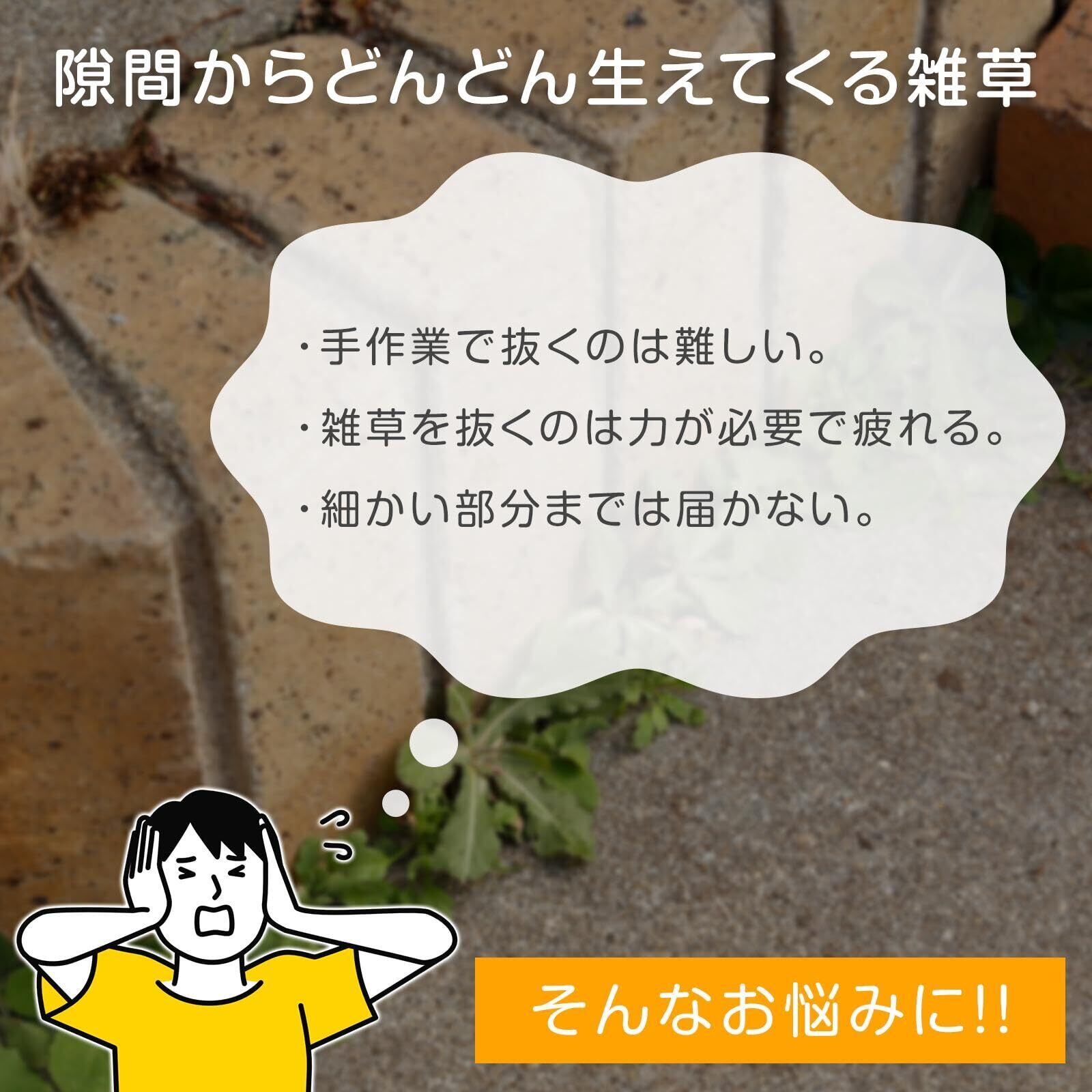 コンクリートや敷石などのすき間に生えた雑草を刈り取る!