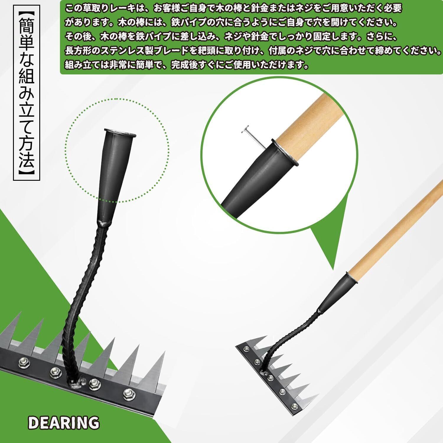 DEARING 草刈りレーキ【2025新型-7歯】草取り道具 多機能 熊手 草刈り道具 除草スコップ 雑草除去ツール 緩め土壌 プラー ステンレス製レーキヘッド 厚手 着脱可能 草取り道具ハンドヘルドタイプ くわ 除草鍬 除草くわ 鍬 庭園用 農業用な 園芸用品 掘り起こし道具 雑草対策