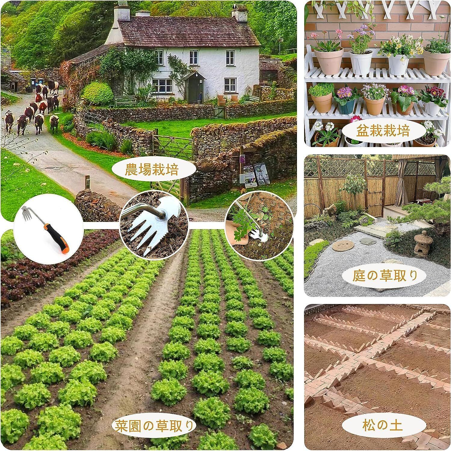 【簡単な除草】この草取り鎌は、狭くて手の届きにくい場所の雑草を取り除くのに役立ちます。 4本の鋭い歯を草の根元近くの土に押し込んで引っ張るだけです。また、土の表面を砕いて排水を良くします。非常に使いやすく効率的です。