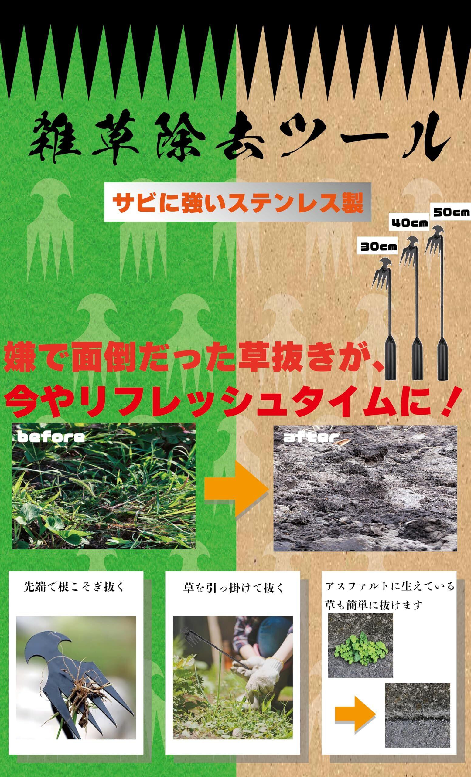 【新しい除草 根こそぎ除草ツール】この根こそぎ除草ツールは、4本の歯を持ち、日常の作業をスムーズにこなせます。 滑らかな表面は粘土が詰まることなく、簡単に除草が行えます。 先端が尖っているので狭い場所でも楽に処理できるので、厄介な雑草を手で抜く必要はなく快適な作業をサポートします。